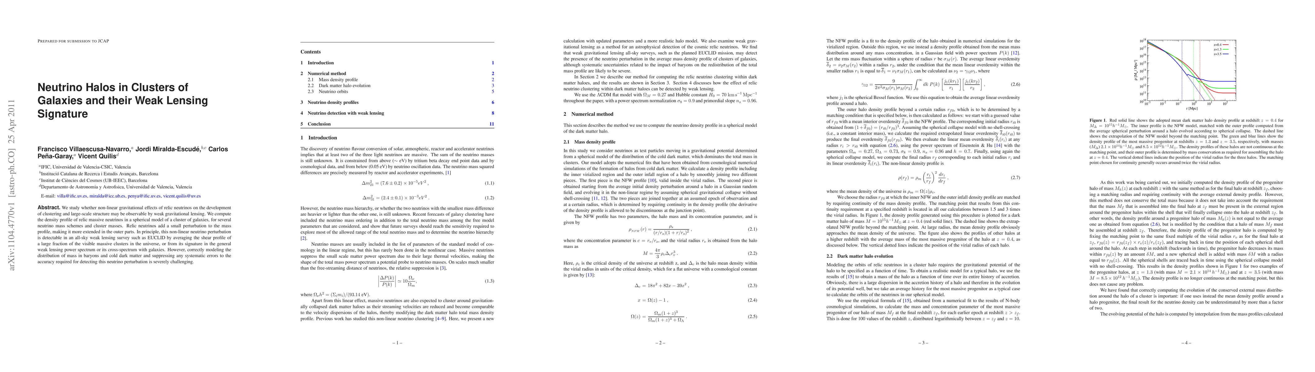 We study whether non-linear gravitational effects of relic neutrinos on the development of clustering and large-scale structure may be observable by weak gravitational lensing. We compute the density profile of relic massive neutrinos in a spherical model of a cluster of galaxies, for several neutrino mass schemes and cluster masses. Relic neutrinos add a small perturbation to the mass profile, making it more extended in the outer parts. In principle, this non-linear neutrino perturbation is detectable in an all-sky weak lensing survey such as EUCLID by averaging the shear profile of a large fraction of the visible massive clusters in the universe, or from its signature in the general weak lensing power spectrum or its cross-spectrum with galaxies. However, correctly modeling the distribution of mass in baryons and cold dark matter and suppressing any systematic errors to the accuracy required for detecting this neutrino perturbation is severely challenging.
