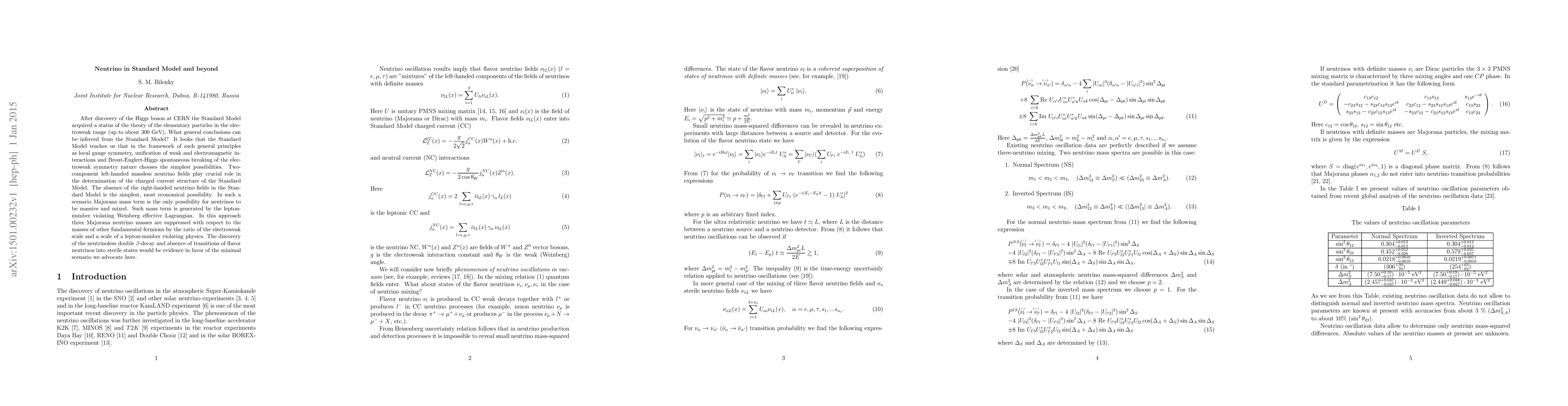 After discovery of the Higgs boson at CERN the Standard Model acquired a status of the theory of the elementary particles in the electroweak range (up to about 300 GeV). What general conclusions can be inferred from the Standard Model? It looks that the Standard Model teaches us that in the framework of such general principles as local gauge symmetry, unification of weak and electromagnetic interactions and Brout-Englert-Higgs spontaneous breaking of the electroweak symmetry nature chooses the simplest possibilities. Two-component left-handed massless neutrino fields play crucial role in the determination of the charged current structure of the Standard Model. The absence of the right-handed neutrino fields in the Standard Model is the simplest, most economical possibility. In such a scenario Majorana mass term is the only possibility for neutrinos to be massive and mixed. Such mass term is generated by the lepton-number violating Weinberg effective Lagrangian. In this approach three Majorana neutrino masses are suppressed with respect to the masses of other fundamental fermions by the ratio of the electroweak scale and a scale of a lepton-number violating physics. The discovery of the neutrinoless double $\beta$-decay and absence of transitions of flavor neutrinos into sterile states would be evidence in favor of the minimal scenario we advocate here.