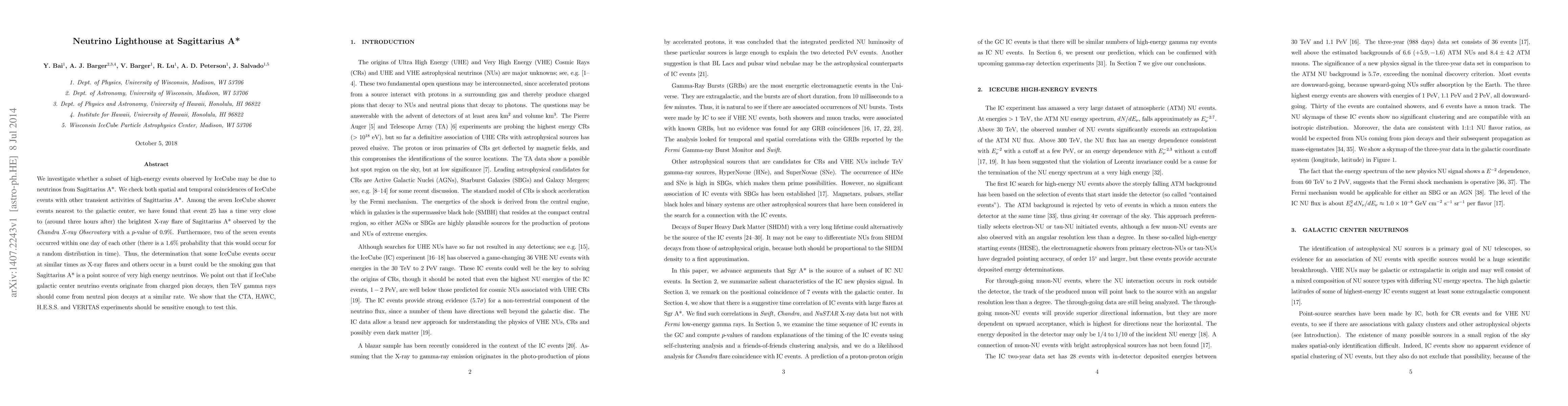 Researchers investigated whether high-energy neutrino events from IceCube could be linked to Sagittarius A* by comparing their timing with X-ray flares and other transient activities of the galactic center. They found a significant coincidence between two events and an X-ray flare, suggesting that Sagittarius A* may be a source of very high energy neutrinos.