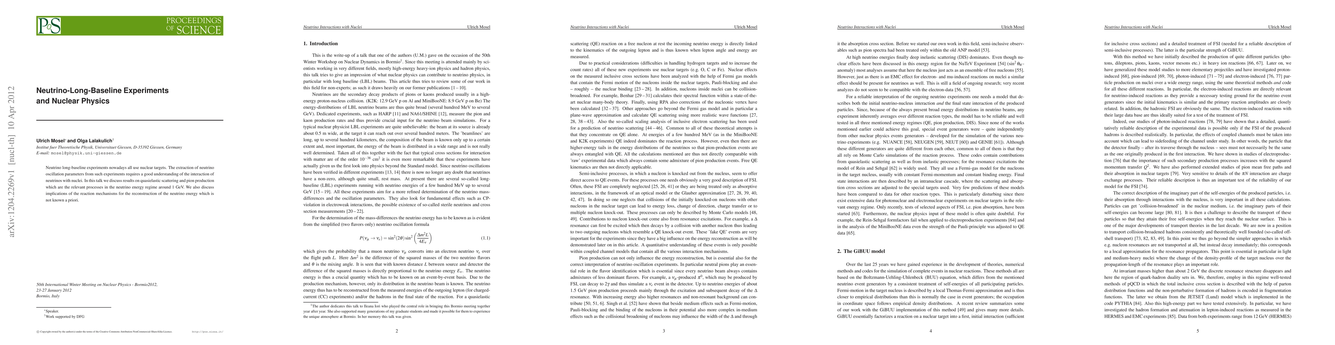 This paper discusses the importance of nuclear physics in neutrino long-baseline experiments, focusing on quasielastic scattering and pion production in neutrino interactions with nuclear targets around 1 GeV. It also examines the implications of these reaction mechanisms for reconstructing neutrino energy.