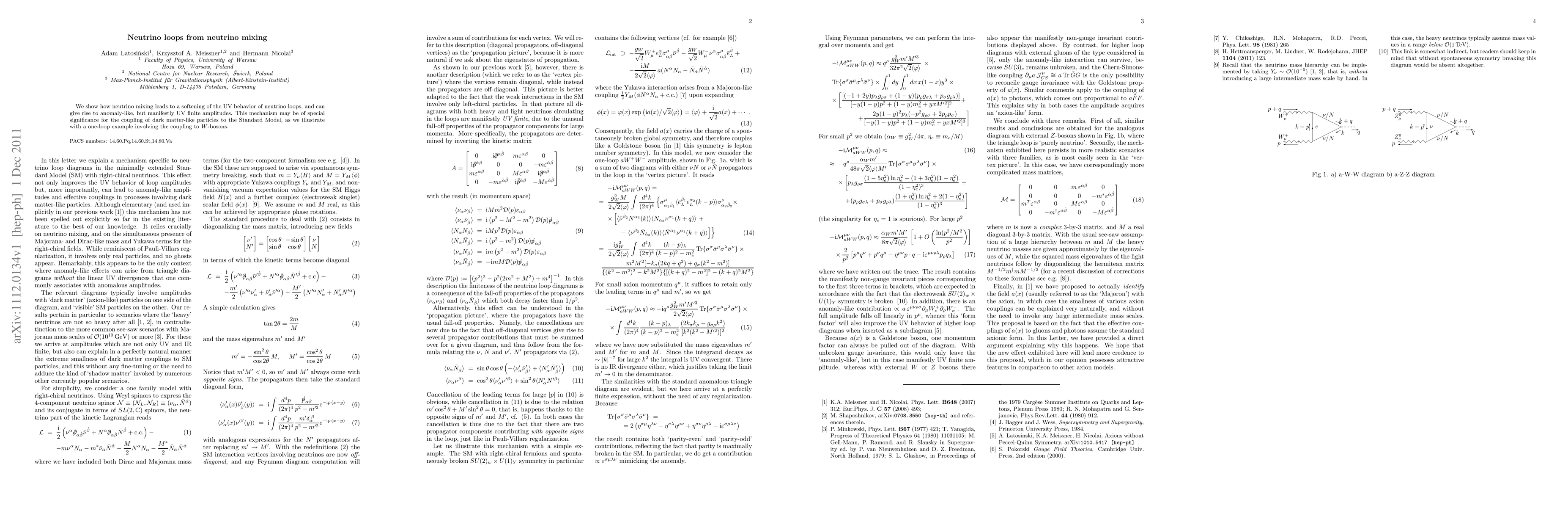 We show how neutrino mixing leads to a softening of the UV behavior of neutrino loops, and can give rise to anomaly-like, but manifestly UV finite amplitudes. This mechanism may be of special significance for the coupling of dark matter-like particles to the Standard Model, as we illustrate with a one-loop example involving the coupling to $W$-bosons.
