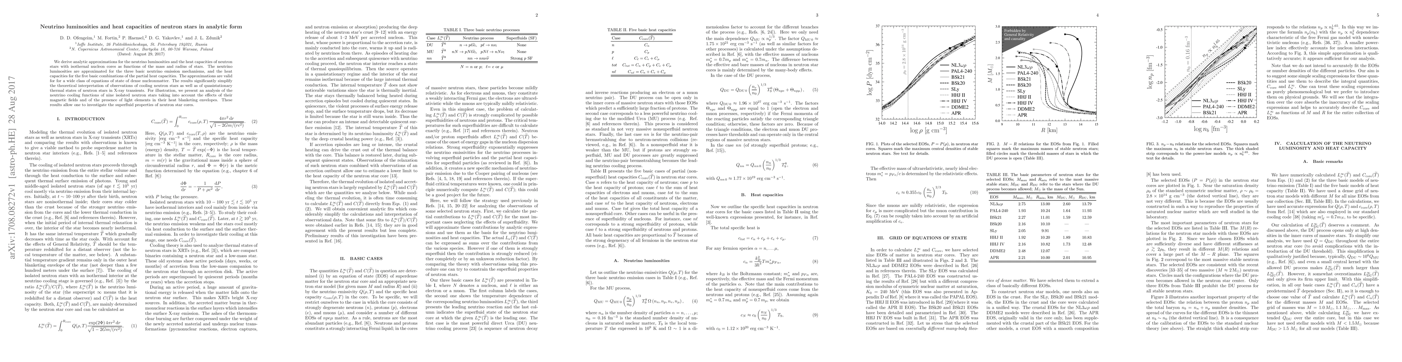 This paper provides analytic approximations for neutron star neutrino luminosities and heat capacities, valid across a broad range of equations of state. The results simplify the interpretation of neutron star cooling observations and allow for investigation of superfluid properties in neutron star cores.
