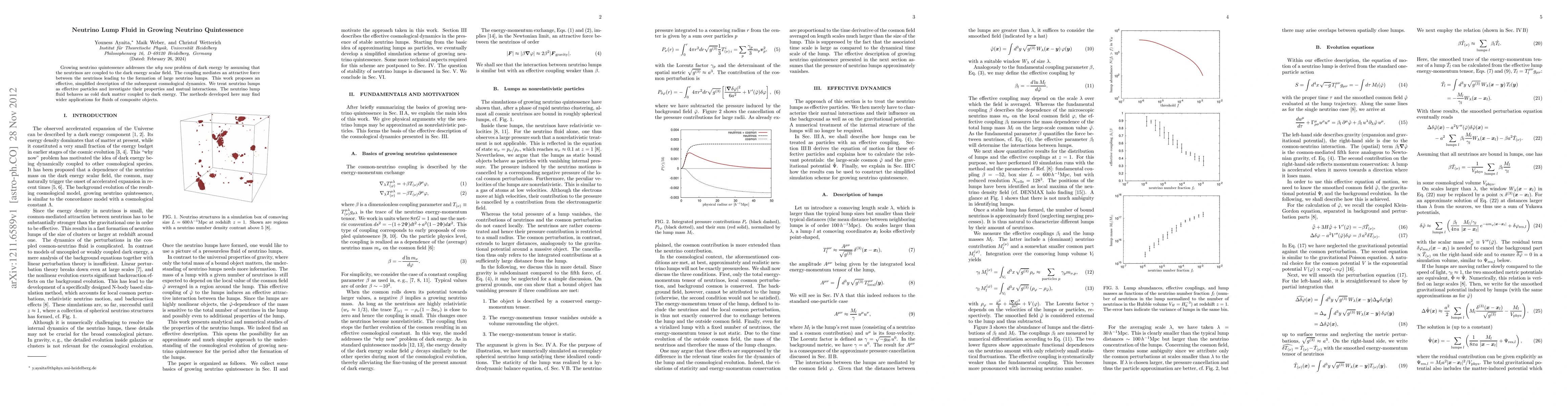 The paper develops methods for describing neutrino lump fluid as effective particles, deriving their equation of motion, and investigating their stability and interactions within the growing neutrino quintessence model.