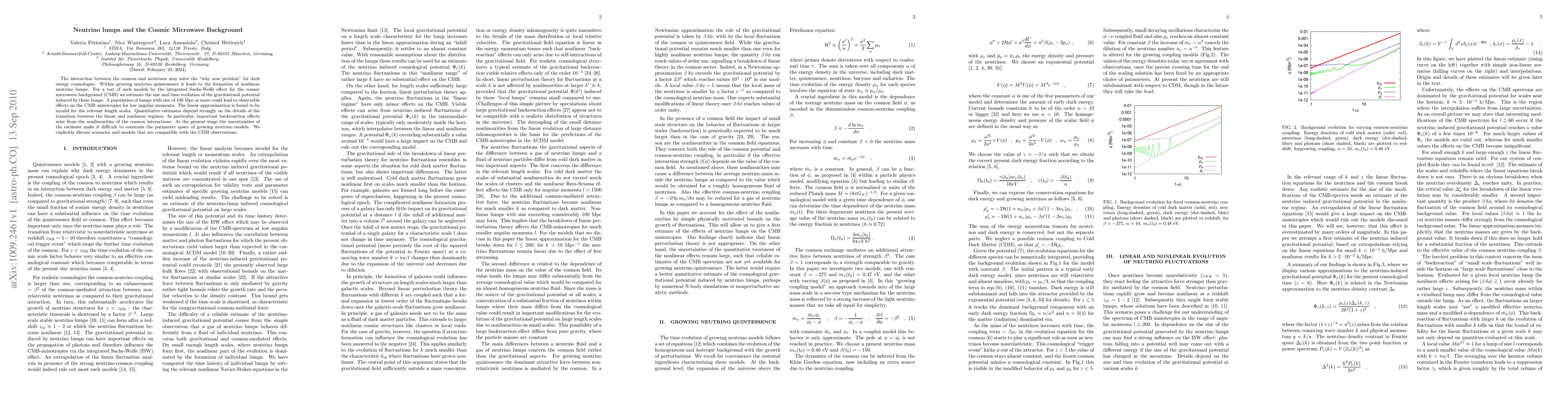 This paper explores how interactions between the cosmon and neutrinos could form nonlinear neutrino lumps, potentially addressing the "why now problem" in dark energy cosmologies. The study estimates the gravitational potential's size and evolution from these lumps, suggesting that observable effects on the CMB could arise from lumps of 100 Mpc or more, though uncertainties complicate parameter space constraints.