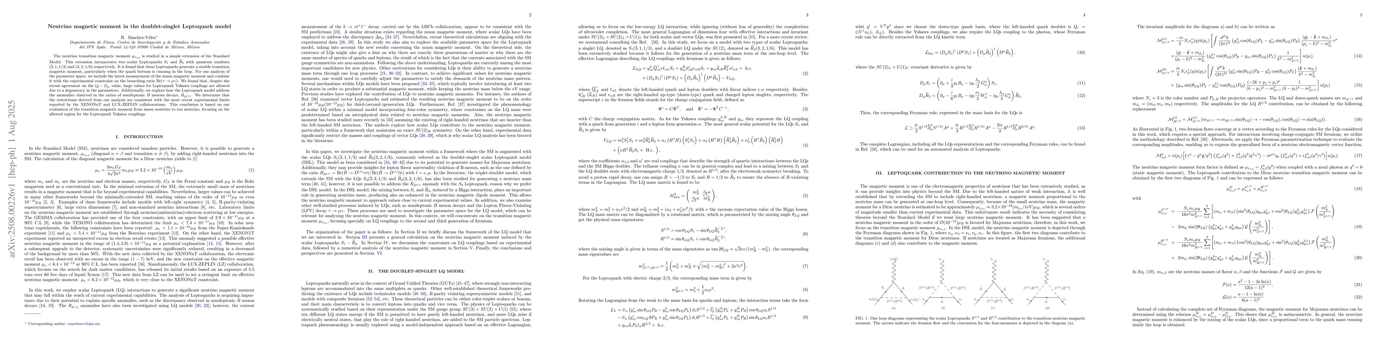The work introduces a novel approach to studying neutrino magnetic moments by extending the Standard Model with specific Leptoquarks, offering a fresh perspective on potential new physics beyond the current model.