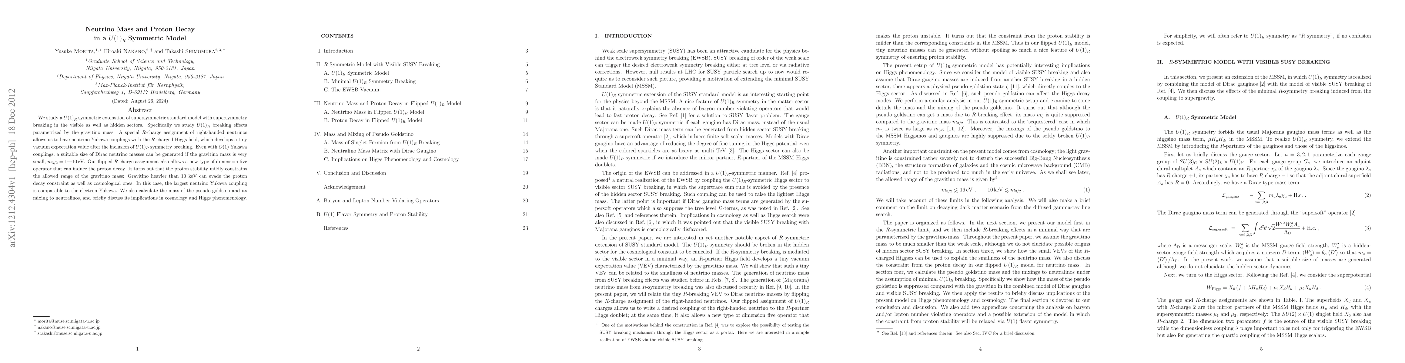 This model provides a mechanism for generating small neutrino masses while maintaining proton stability and being consistent with cosmological constraints, offering insights into supersymmetry breaking and neutrino physics.