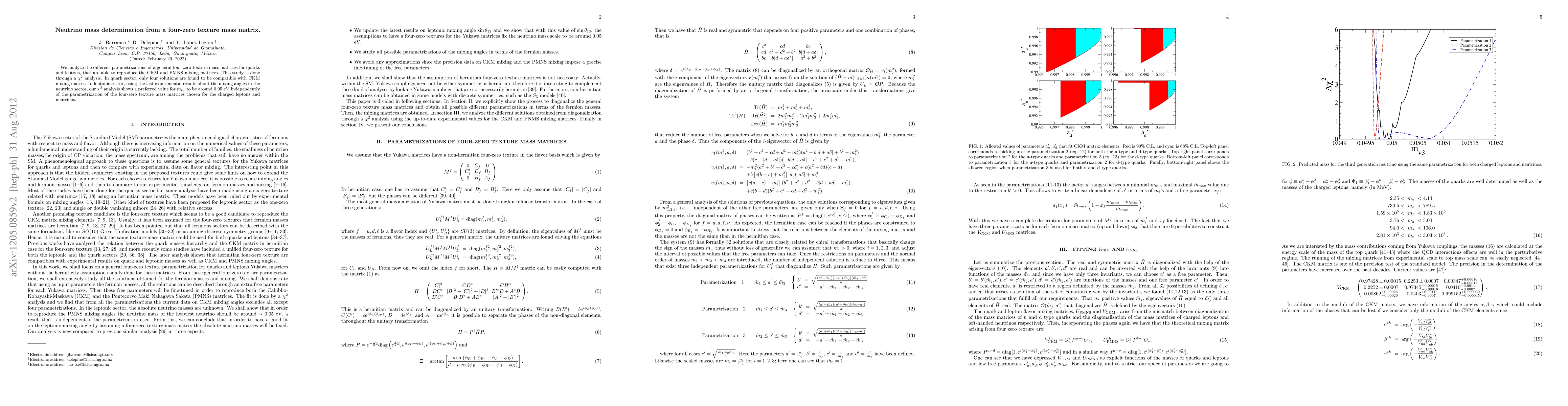 This paper explores four-zero texture mass matrices for quarks and leptons to reproduce observed mixing matrices, finding four compatible solutions for quarks and a preferred neutrino mass value of approximately 0.05 eV for m_nu_3 through Chi-Square analysis.