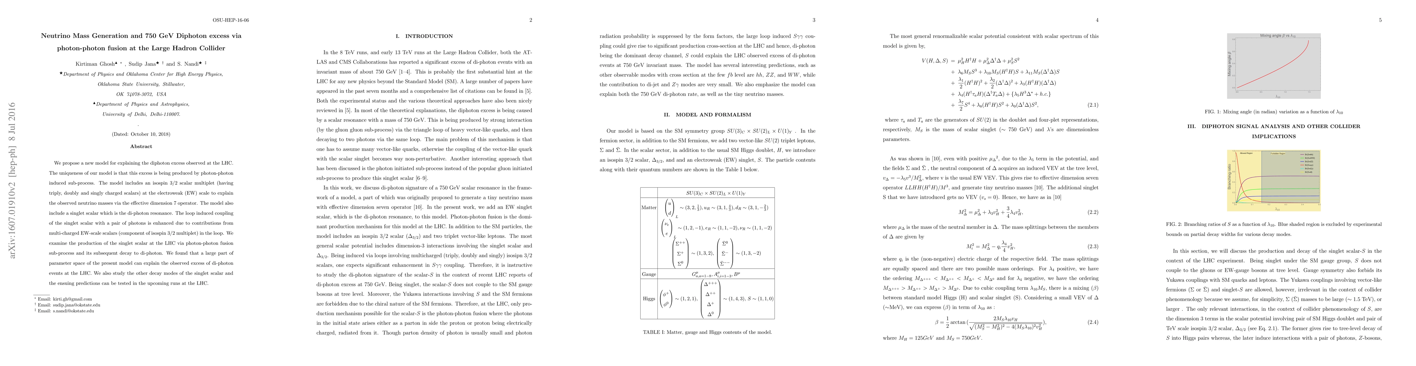 We propose a new model for explaining the diphoton excess observed at the LHC. The uniqueness of our model is that this excess is being produced by photon-photon induced sub-process. The model includes an isospin $3/2$ scalar multiplet (having triply, doubly and singly charged scalars) at the electroweak (EW) scale to explain the observed neutrino masses via the effective dimension $7$ operator. The model also include a singlet scalar which is the di-photon resonance. The loop induced coupling of the singlet scalar with a pair of photons is enhanced due to contributions from multi-charged EW-scale scalars (component of isospin $3/2$ multiplet) in the loop. We examine the production of the singlet scalar at the LHC via photon-photon fusion sub-process and its subsequent decay to di-photon. We found that a large part of parameter space of the present model can explain the observed excess of di-photon events at the LHC. We also study the other decay modes of the singlet scalar and the ensuing predictions can be tested in the upcoming runs at the LHC.
