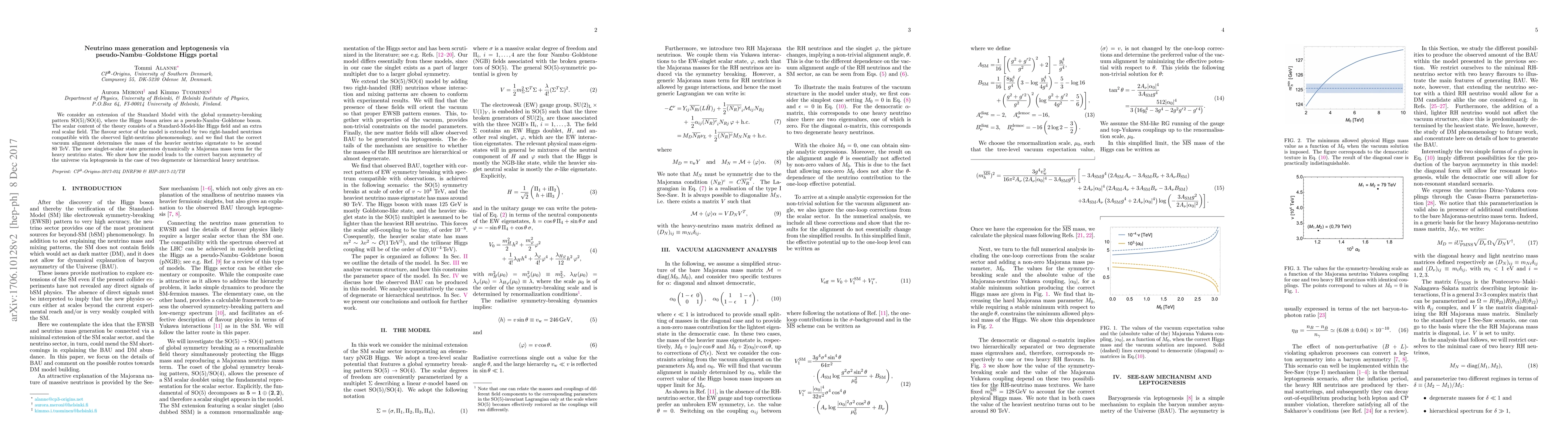 This paper proposes an extended Standard Model with a pseudo-Nambu-Goldstone boson Higgs arising from SO(5)/SO(4) symmetry breaking, introducing a new scalar field and right-handed neutrinos. It generates a Majorana mass for heavy neutrinos, leading to successful leptogenesis and explaining the observed baryon asymmetry.