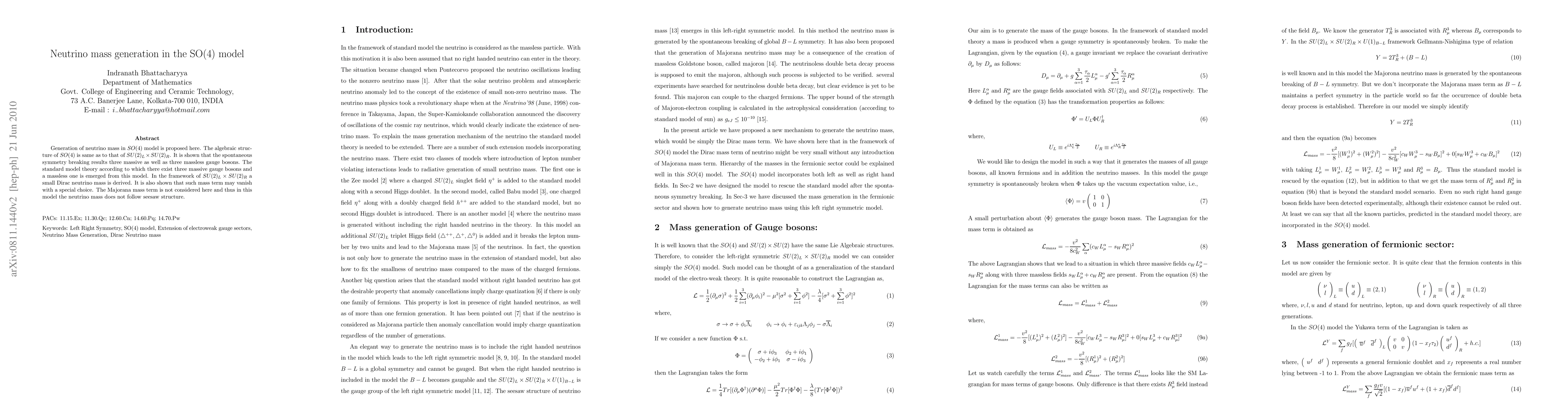 The introduction of SU(2)R symmetry breaking in the SO(4) model provides a new way to generate neutrino masses without Majorana-type mass terms.