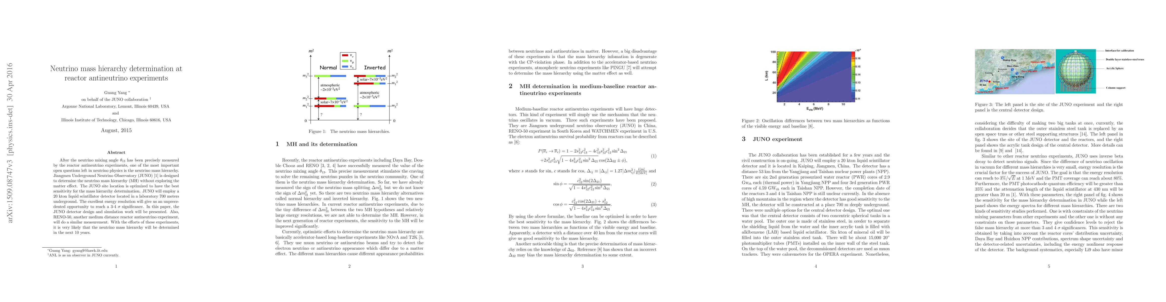 This paper discusses the design and simulation of the Jiangmen Underground Neutrino Observatory (JUNO) aimed at determining the neutrino mass hierarchy, leveraging a 20 kton liquid scintillator detector and optimized site location. It also mentions the complementary efforts of RENO-50, predicting that the neutrino mass hierarchy will likely be resolved within the next decade.