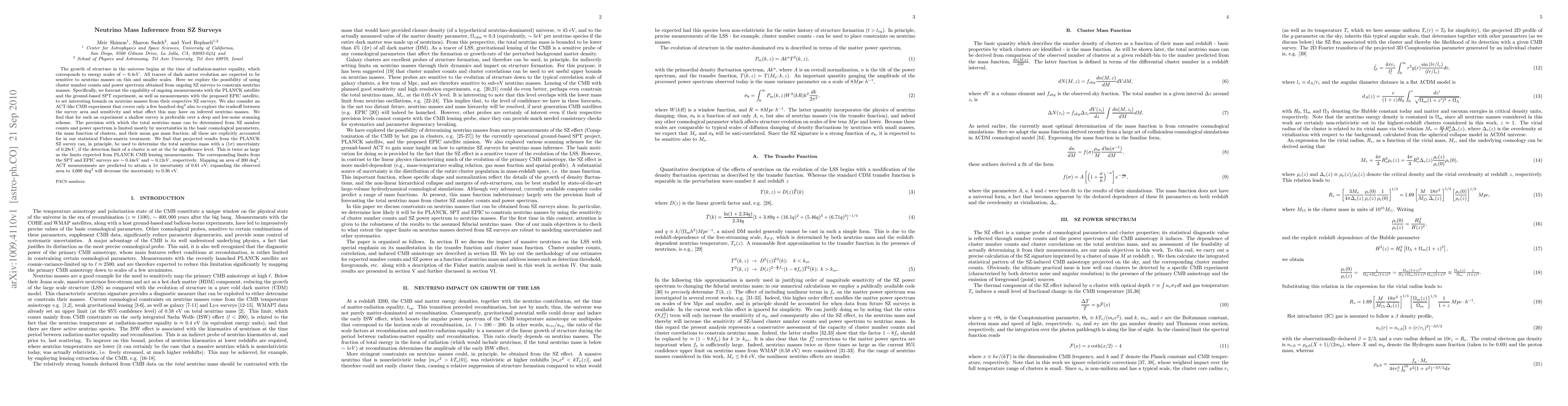 Researchers used cluster number counts and power spectrum from SZ surveys to constrain neutrino masses, finding that current measurements can set interesting bounds on neutrino mass with projected uncertainties as low as 0.28 eV.