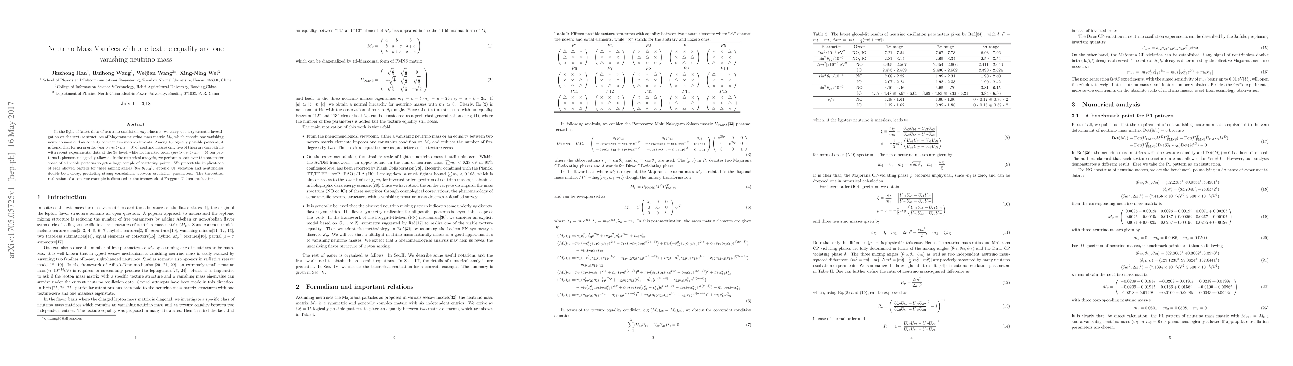 This paper investigates texture structures of Majorana neutrino mass matrices with one vanishing mass and one texture equality, finding that only five patterns match recent experimental data for the normal mass hierarchy and ten for the inverted hierarchy. It analyzes implications for mixing angles, CP violation, and neutrinoless double-beta decay, predicting strong correlations between oscillation parameters.