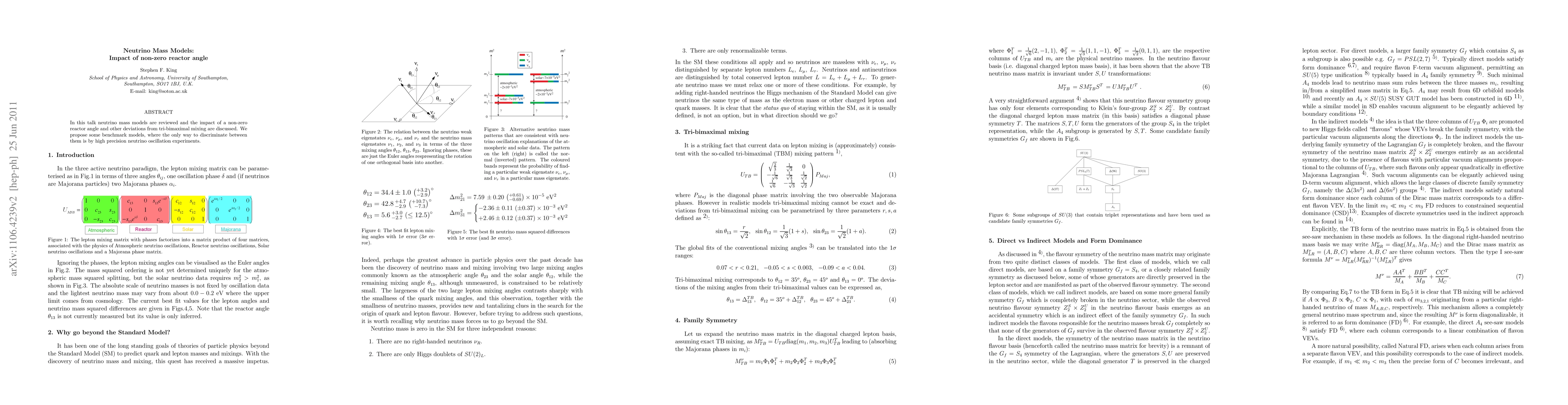 This paper reviews neutrino mass models and discusses how a non-zero reactor angle affects them, highlighting the importance of precise neutrino oscillation experiments for discrimination.
