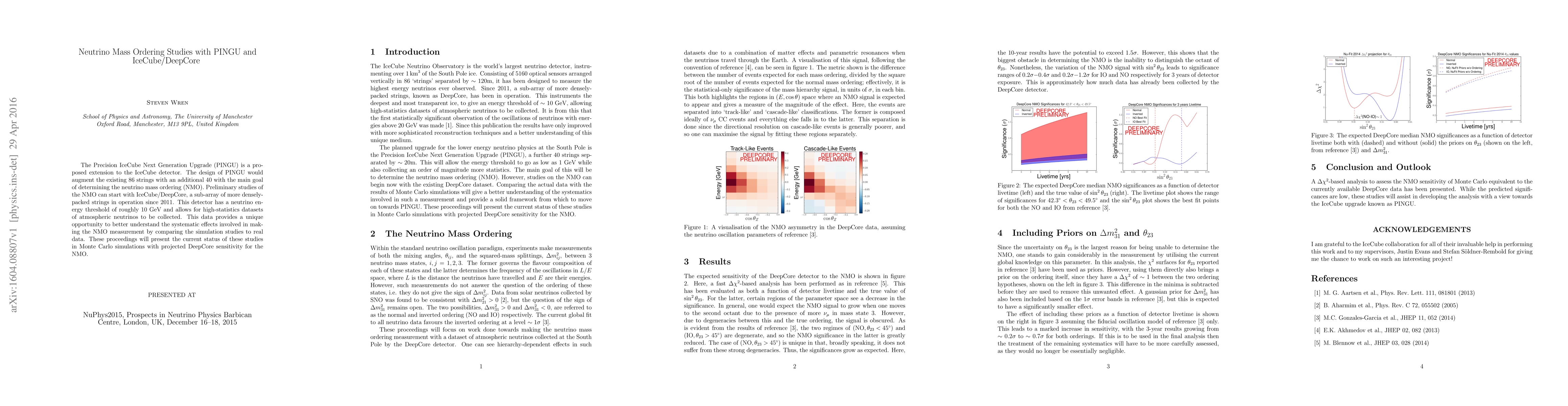 This work stands out by leveraging existing DeepCore data to study NMO, preparing for future PINGU measurements, and demonstrating the impact of priors on oscillation parameters on NMO sensitivity.