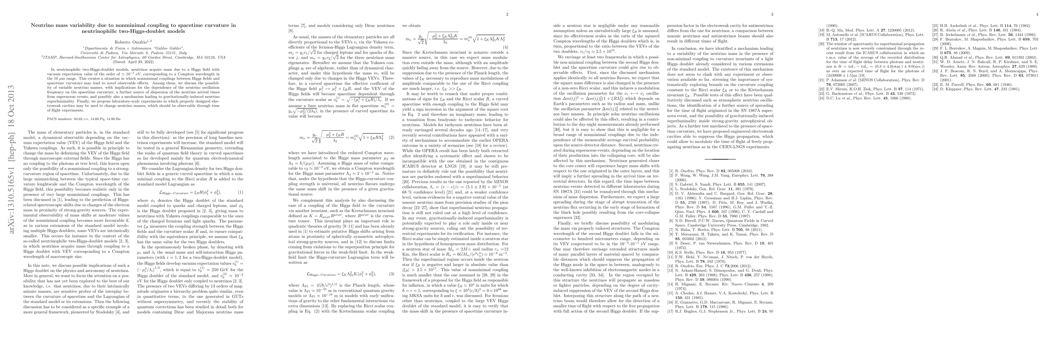 This paper explores how nonminimal coupling between Higgs fields and spacetime curvature in neutrinophilic two-Higgs-doublet models can lead to variable neutrino masses. It suggests that this effect could influence neutrino oscillation frequencies and arrival times, potentially enabling gravitationally-induced superluminality and proposing laboratory experiments to observe these changes.