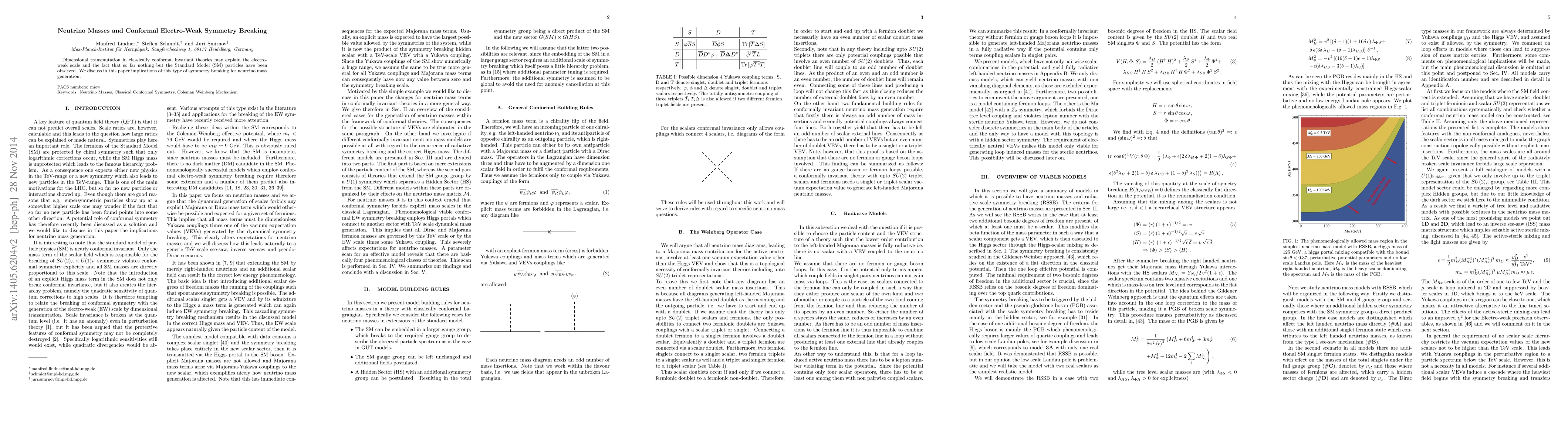 This paper explores how dimensional transmutation in classically conformal invariant theories could explain the electro-weak scale and the limited observation of Standard Model particles, focusing on its implications for neutrino mass generation.