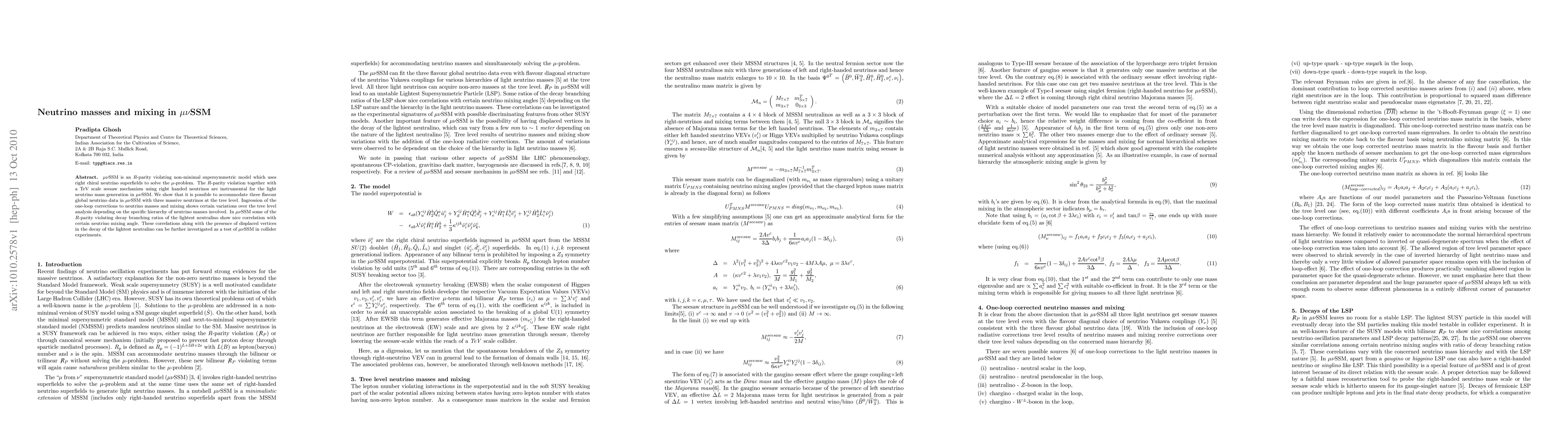 The $\mu\nu$SSM, an $R$-parity violating non-minimal supersymmetric model, utilizes right-handed neutrinos to solve the $\mu$-problem and generate light neutrino masses via a TeV scale seesaw mechanism. It accommodates three-flavor neutrino oscillation data with three massive neutrinos at tree level, while one-loop corrections introduce variations based on neutrino mass hierarchy.