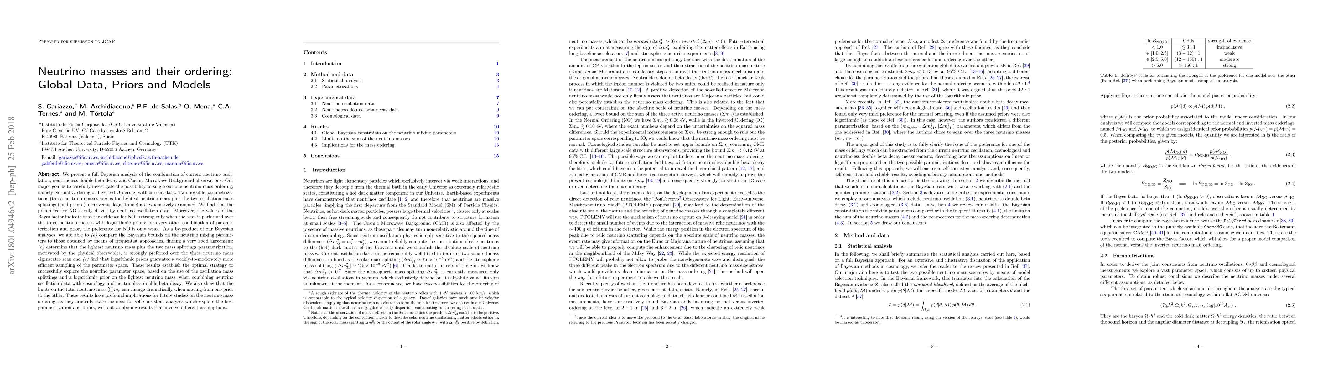 We present a Bayesian analysis of the combination of current neutrino oscillation, neutrinoless double beta decay and CMB observations. Our major goal is to carefully investigate the possibility to single out one neutrino mass ordering, Normal Ordering or Inverted Ordering, with current data. Two possible parametrizations (three neutrino masses versus the lightest neutrino mass plus the two oscillation mass splittings) and priors (linear versus logarithmic) are examined. We find that the preference for NO is only driven by neutrino oscillation data. Moreover, the values of the Bayes factor indicate that the evidence for NO is strong only when the scan is performed over the three neutrino masses with logarithmic priors; for every other combination of parameterization and prior, the preference for NO is only weak. As a by-product of our Bayesian analyses, we are able to a) compare the Bayesian bounds on the neutrino mixing parameters to those obtained by means of frequentist approaches, finding a very good agreement; b) determine that the lightest neutrino mass plus the two mass splittings parametrization, motivated by the physical observables, is strongly preferred over the three neutrino mass eigenstates scan and c) find that there is a weak-to-moderate preference for logarithmic priors. These results establish the optimal strategy to successfully explore the neutrino parameter space, based on the use of the oscillation mass splittings and a logarithmic prior on the lightest neutrino mass. We also show that the limits on the total neutrino mass $\sum m_\nu$ can change dramatically when moving from one prior to the other. These results have profound implications for future studies on the neutrino mass ordering, as they crucially state the need for self-consistent analyses which explore the best parametrization and priors, without combining results that involve different assumptions.