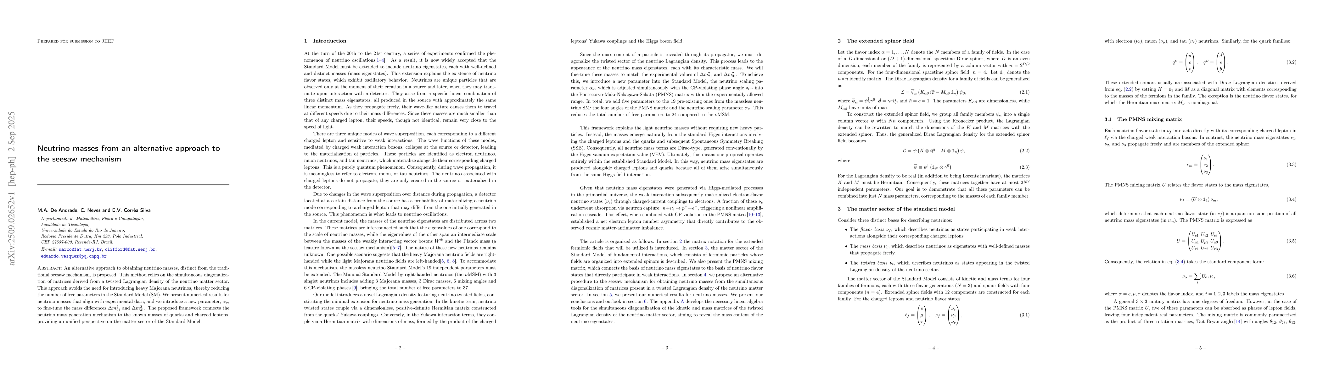 An alternative approach to obtaining neutrino masses, distinct from the traditional seesaw mechanism, is proposed. This method relies on the simultaneous diagonalization of matrices derived from a twisted Lagrangian density of the neutrino matter sector. This approach avoids the need for introducing heavy Majorana neutrinos, thereby reducing the number of free parameters in the Standard Model (SM). We present numerical results for neutrino masses that align with experimental data, and we introduce a new parameter, $\alpha_\nu$, to fine-tune the mass differences $\Delta m^2_{21}$ and $\Delta m^2_{31}$. The proposed framework connects the neutrino mass generation mechanism to the known masses of quarks and charged leptons, providing an unified perspective on the matter sector of the Standard Model.