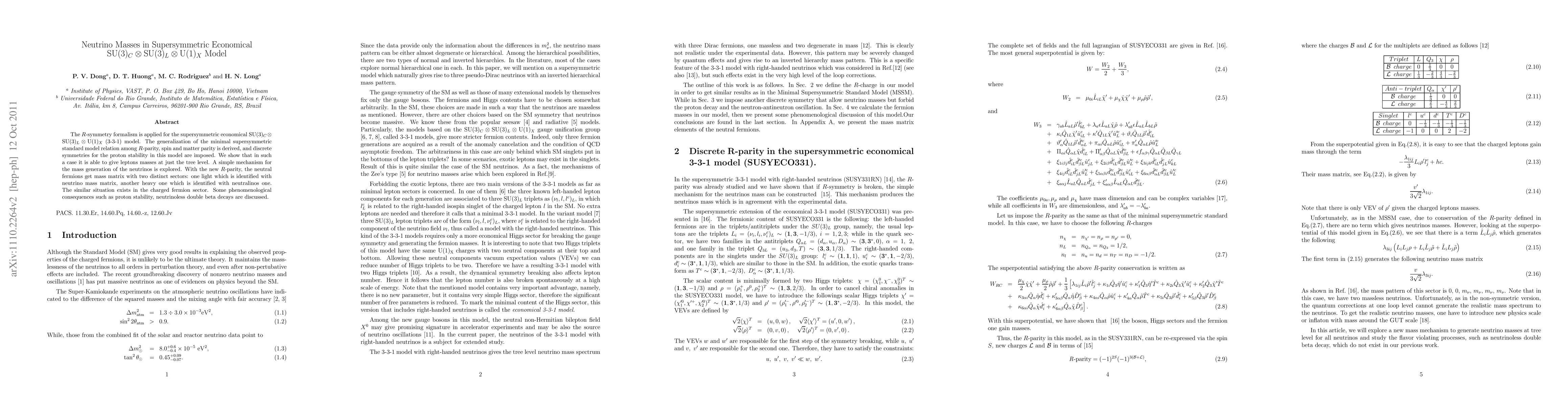 This paper explores the R-symmetry formalism in the 3-3-1 supersymmetric model, deriving a new relation for mass generation in leptons and neutral fermions. The model provides a simple mechanism for neutrino masses at tree level, resulting in distinct light and heavy mass sectors, and discusses implications for proton stability and neutrinoless double beta decay.