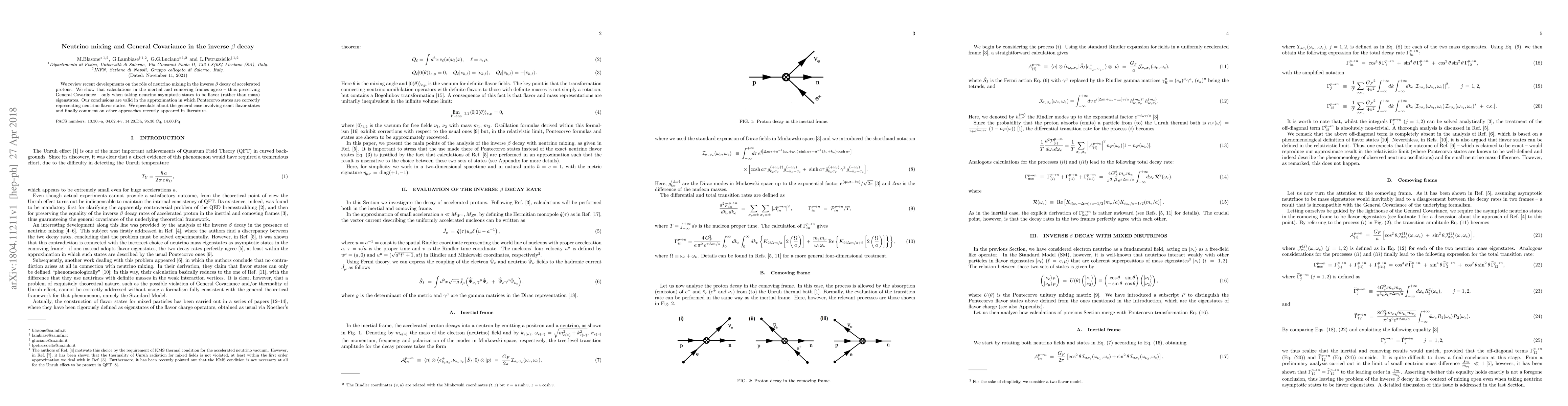 We review recent developments on the role of neutrino mixing in the inverse beta decay of accelerated protons. We show that calculations in the inertial and comoving frames agree (thus preserving General Covariance) only when taking neutrino asymptotic states to be flavor (rather than mass) eigenstates. Our conclusions are valid in the approximation in which Pontecorvo states are correctly representing neutrino flavor states. We speculate about the general case involving exact flavor states and finally comment on other approaches recently appeared in literature.