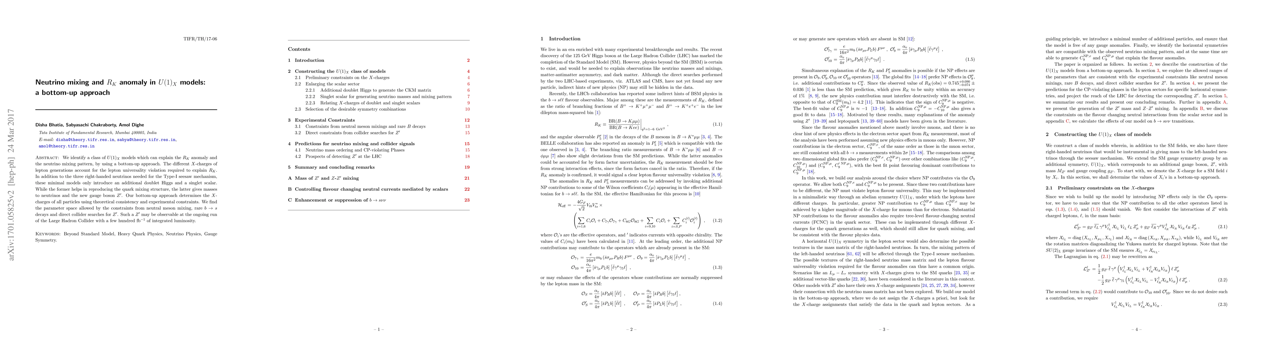 This paper proposes $U(1)_X$ models that explain both the $R_K$ anomaly and neutrino mixing patterns through a bottom-up approach. The models introduce minimal new particles, including a doublet Higgs and a singlet scalar, to account for lepton universality violation and neutrino masses.