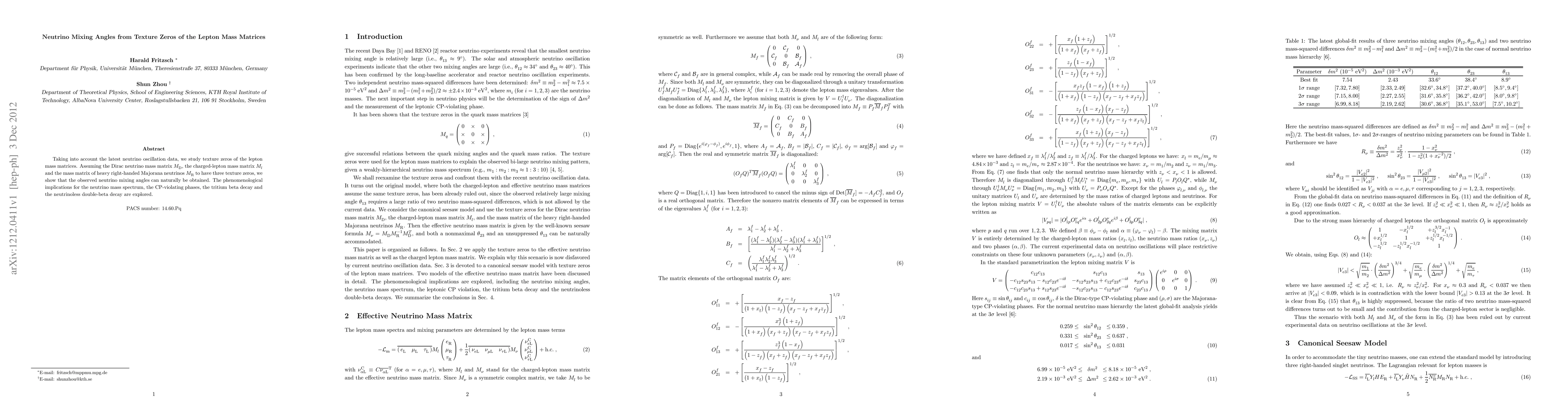 This paper investigates the texture zeros of lepton mass matrices to explain observed neutrino mixing angles using the latest oscillation data. It demonstrates that three texture zeros in the Dirac, charged-lepton, and right-handed Majorana neutrino mass matrices can naturally yield the observed neutrino mixing angles and explores implications for the mass spectrum, CP-violating phases, tritium beta decay, and neutrinoless double-beta decay.