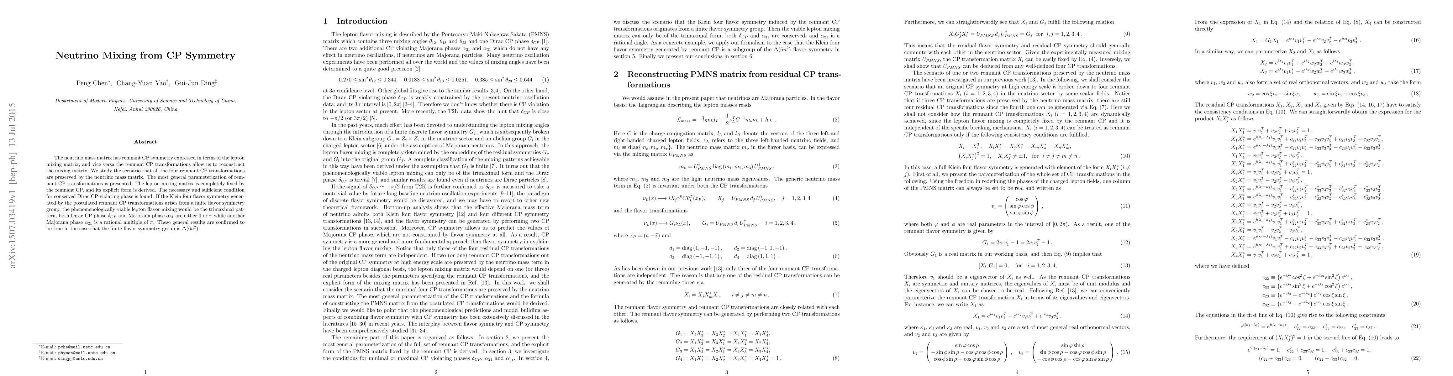 This paper explores how CP symmetry in neutrino mass matrices can determine the lepton mixing matrix and vice versa. It finds that preserving all four remnant CP transformations fixes the mixing matrix and identifies the trimaximal pattern as a viable phenomenological outcome under certain symmetry conditions.