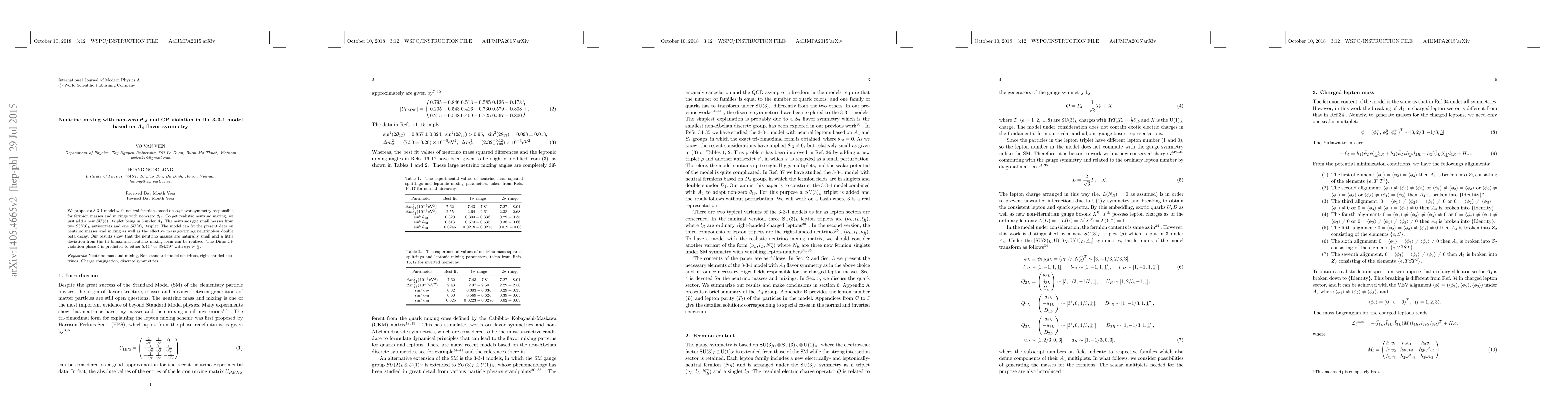 This paper proposes a 3-3-1 model with $A_4$ flavor symmetry to explain non-zero $\theta_{13}$ and CP violation in neutrino mixing. The model incorporates a new $SU(3)_L$ triplet and predicts small neutrino masses, fitting current data and predicting a CP violation phase of either $5.41^{\circ}$ or $354.59^{\circ}$.