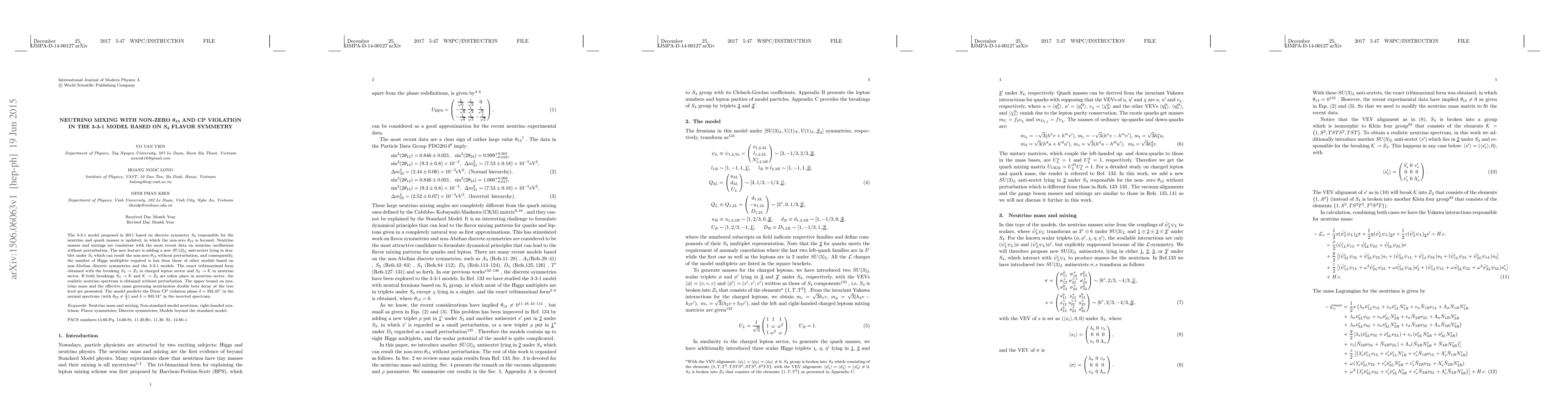 The 3-3-1 model proposed in 2011 based on discrete symmetry $S_4$ responsible for the neutrino and quark masses is updated, in which the non-zero $\theta_{13}$ is focused. Neutrino masses and mixings are consistent with the most recent data on neutrino oscillations without perturbation. The new feature is adding a new $SU(3)_L$ anti-sextet lying in doublet under $S_4$ which can result the non-zero $\theta_{13}$ without perturbation, and consequently, the number of Higgs multiplets required is less than those of other models based on non-Abelian discrete symmetries and the 3-3-1 models. The exact tribimaximal form obtained with the breaking $S_4 \rightarrow Z_3$ in charged lepton sector and $S_4 \rightarrow \mathcal{K}$ in neutrino sector. If both breakings $S_4\rightarrow \mathcal{K}$ and $\mathcal{K} \rightarrow Z_2$ are taken place in neutrino sector, the realistic neutrino spectrum is obtained without perturbation. The upper bound on neutrino mass and the effective mass governing neutrinoless double beta decay at the tree level are presented. The model predicts the Dirac CP violation phase $\delta=292.45^\circ$ in the normal spectrum (with $\theta_{23}\neq \frac{\pi}{4}$) and $\delta=303.14^\circ$ in the inverted spectrum.