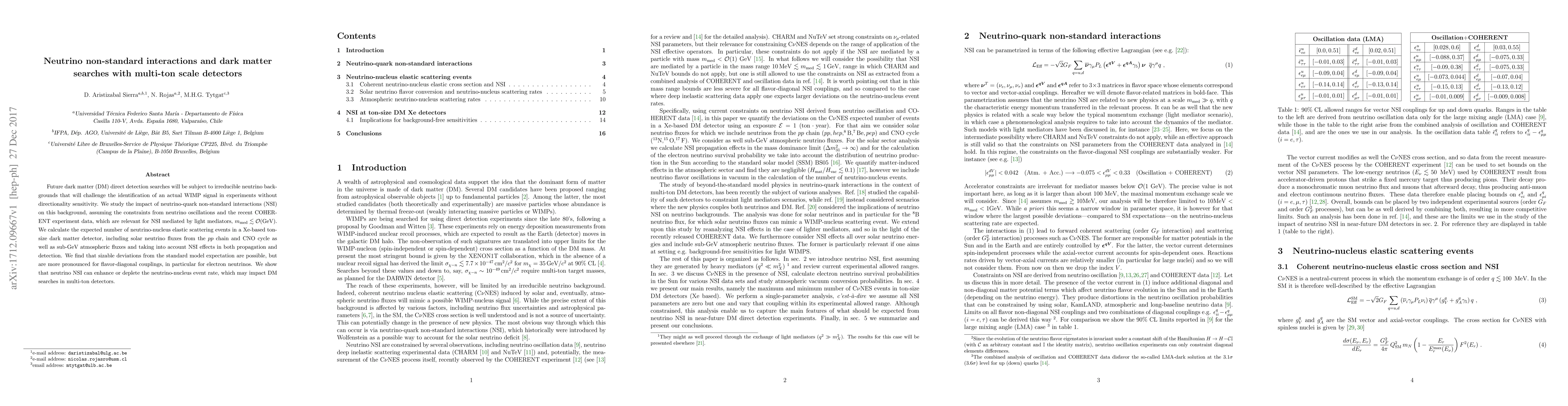 Future dark matter (DM) direct detection searches will be subject to irreducible neutrino backgrounds that will challenge the identification of an actual WIMP signal in experiments without directionality sensitivity. We study the impact of neutrino-quark non-standard interactions (NSI) on this background, assuming the constraints from neutrino oscillations and the recent COHERENT experiment data, which are relevant for NSI mediated by light mediators, $m_{\rm med} \lesssim{\cal O}$(GeV). We calculate the expected number of neutrino-nucleus elastic scattering events in a Xe-based ton-size dark matter detector, including solar neutrino fluxes from the $pp$ chain and CNO cycle as well as sub-GeV atmospheric fluxes and taking into account NSI effects in both propagation and detection. We find that sizable deviations from the standard model expectation are possible, but are more pronounced for flavor-diagonal couplings, in particular for electron neutrinos. We show that neutrino NSI can enhance or deplete the neutrino-nucleus event rate, which may impact DM searches in multi-ton detectors.