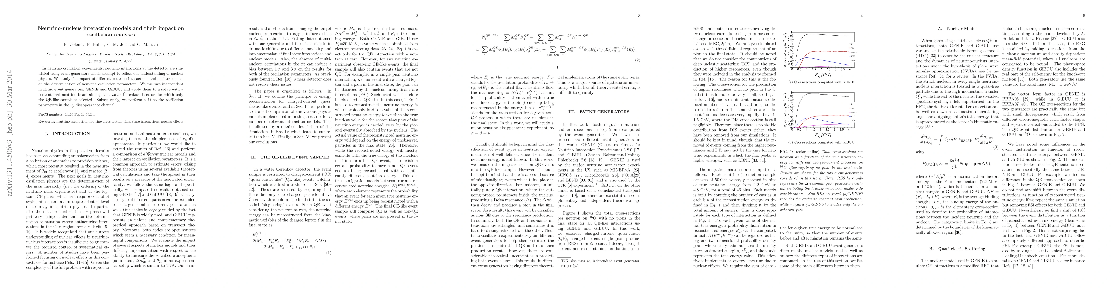 In neutrino oscillation experiments, neutrino interactions at the detector are simulated using event generators which attempt to reflect our understanding of nuclear physics. We study the impact of different neutrino interactions and nuclear models on the determination of neutrino oscillation parameters. We use two independent neutrino event generators, GENIE and GiBUU, and apply them to a setup with a conventional neutrino beam aiming at a water \v{C}erenkov detector, for which only the QE-like sample is selected. Subsequently, we perform a fit to the oscillation parameters in the $\nu_\mu$ disappearance channel.