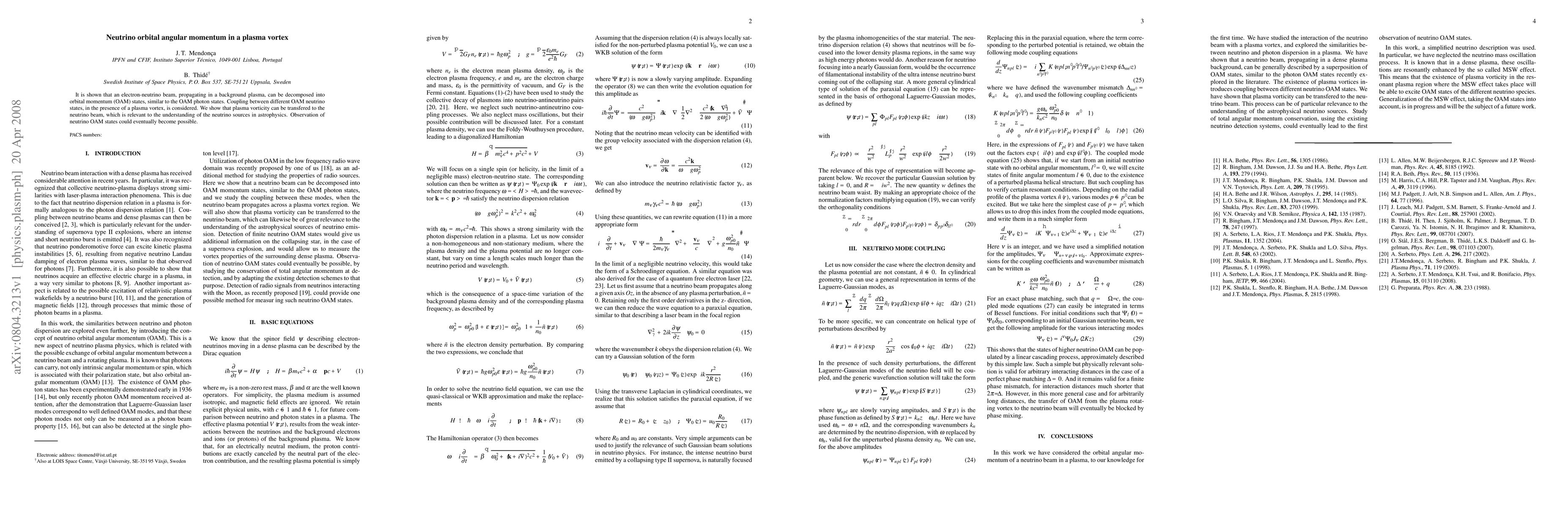 This research introduces a new mechanism for transferring orbital angular momentum from plasmas to neutrinos, which has significant implications for our understanding of astrophysical neutrino sources.