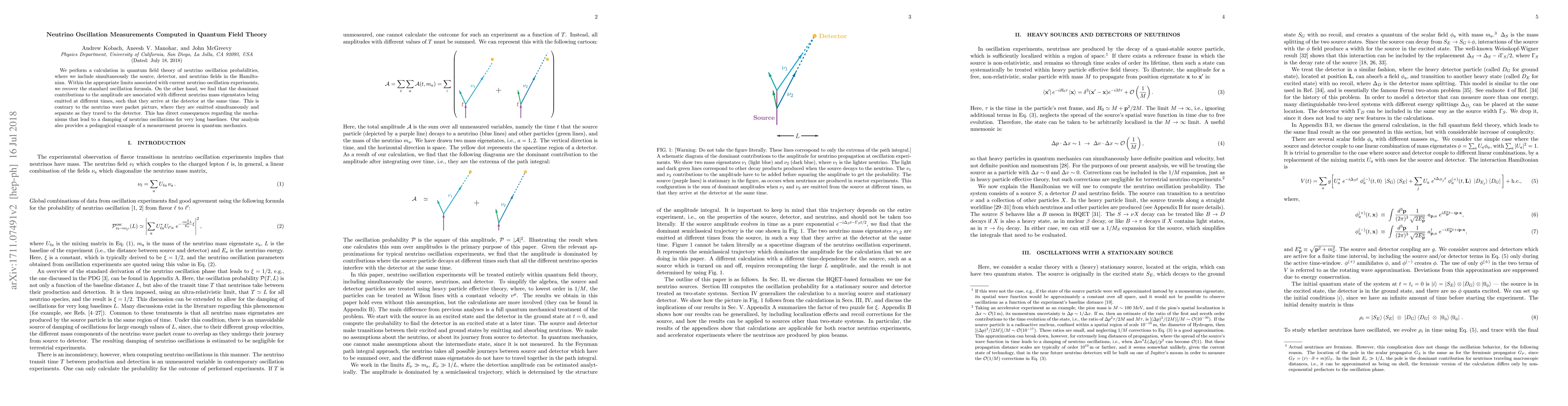 This paper calculates neutrino oscillation probabilities in quantum field theory, revealing that dominant contributions arise from different mass eigenstates emitted at different times, challenging the traditional wave packet picture. It also discusses implications for long-baseline oscillation damping and serves as a pedagogical example of quantum measurement processes.