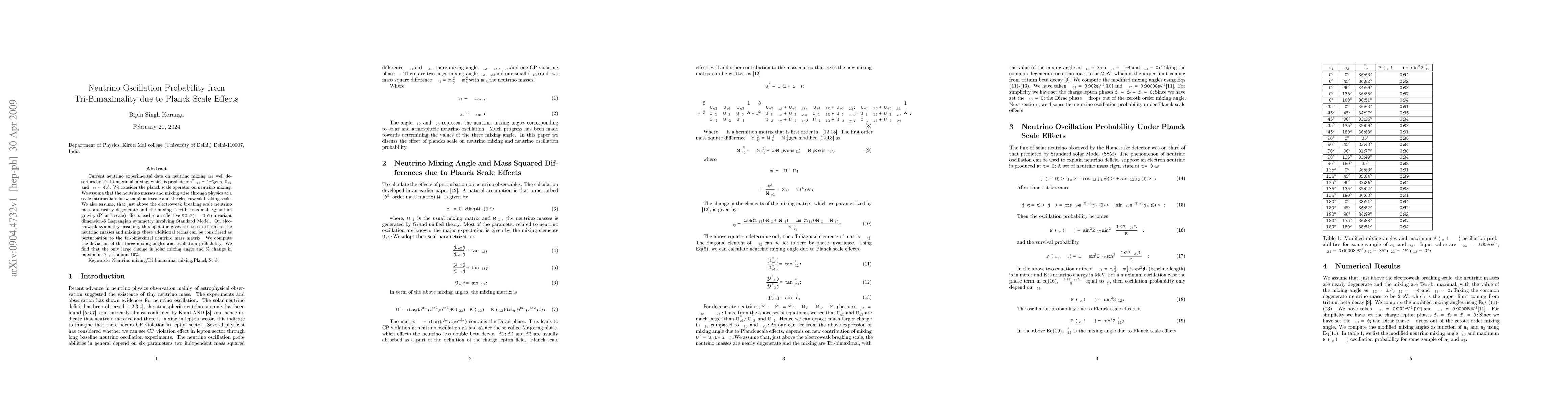 This paper investigates how Planck scale effects modify tri-bimaximal neutrino mixing, finding that quantum gravity corrections lead to a small perturbation in the mixing angles, resulting in a maximum 10% change in the oscillation probability.