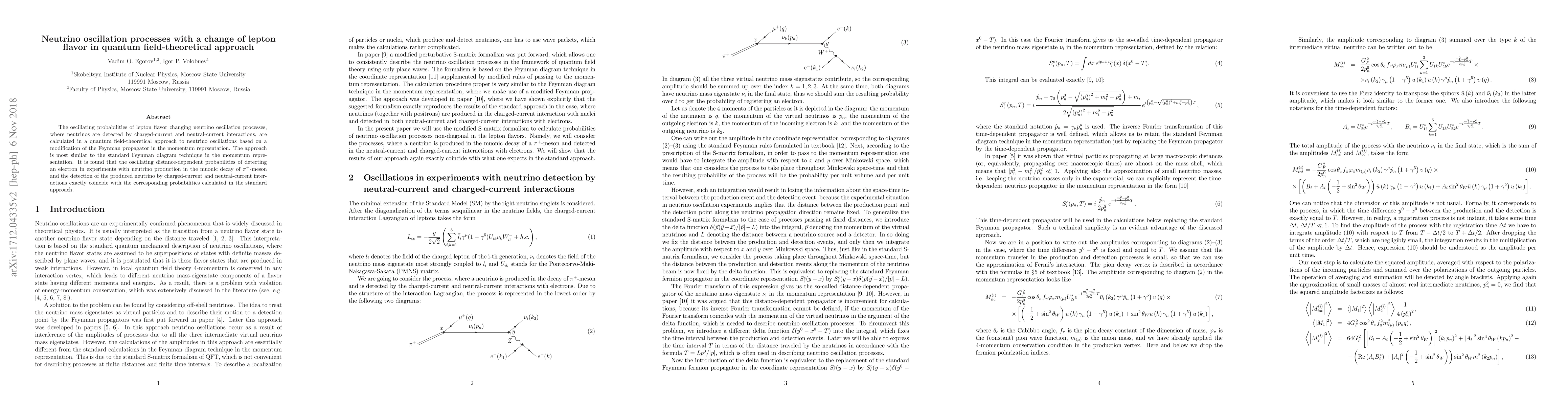 This paper calculates the oscillating probabilities of neutrino oscillation processes involving lepton flavor change using a quantum field-theoretical approach that modifies the Feynman propagator. The results match those from the standard Feynman diagram technique, confirming the consistency of the new method.