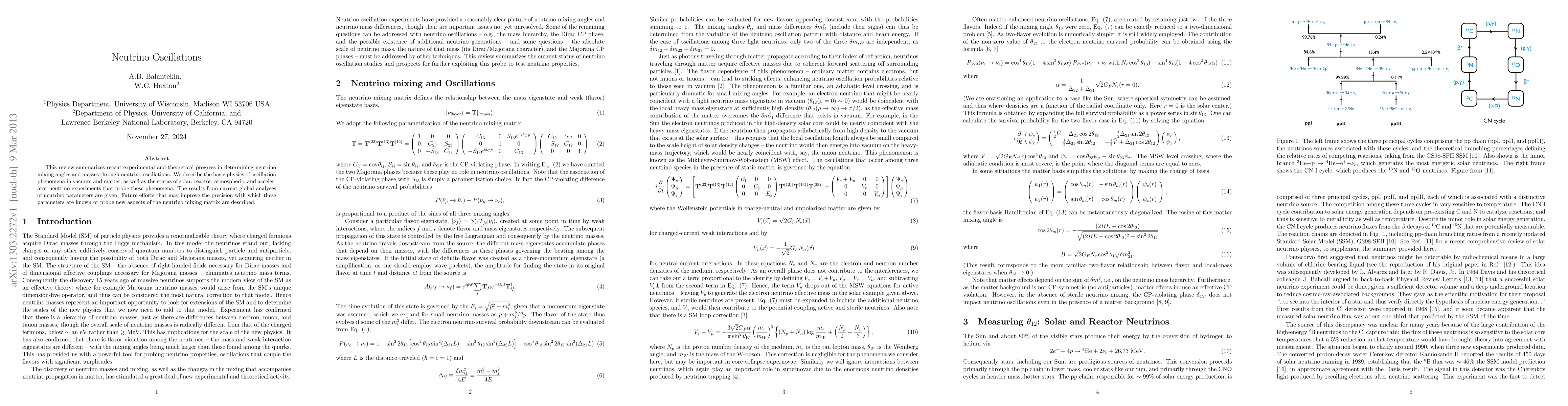 Recent experiments have made progress in determining neutrino mixing angles and masses through oscillations, with current global analyses providing a better understanding of the phenomenon. Future studies aim to improve precision on these parameters and explore new aspects of the neutrino mixing matrix.