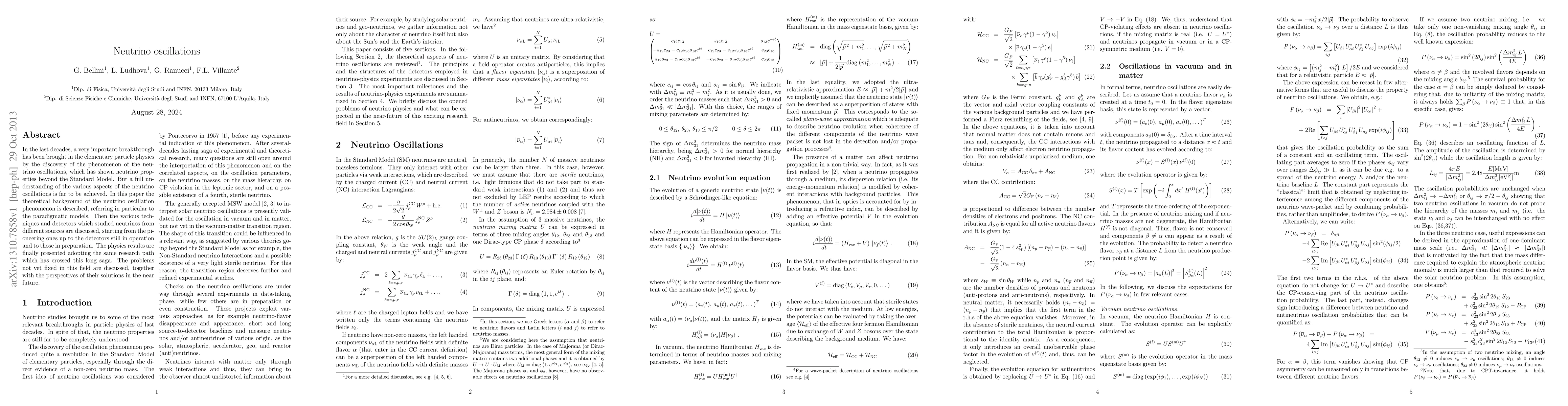 This paper discusses neutrino oscillations, a phenomenon that has expanded our understanding of elementary particle physics beyond the Standard Model. It reviews key findings from various experiments and techniques used to study neutrinos from different sources, highlighting ongoing research and future perspectives.