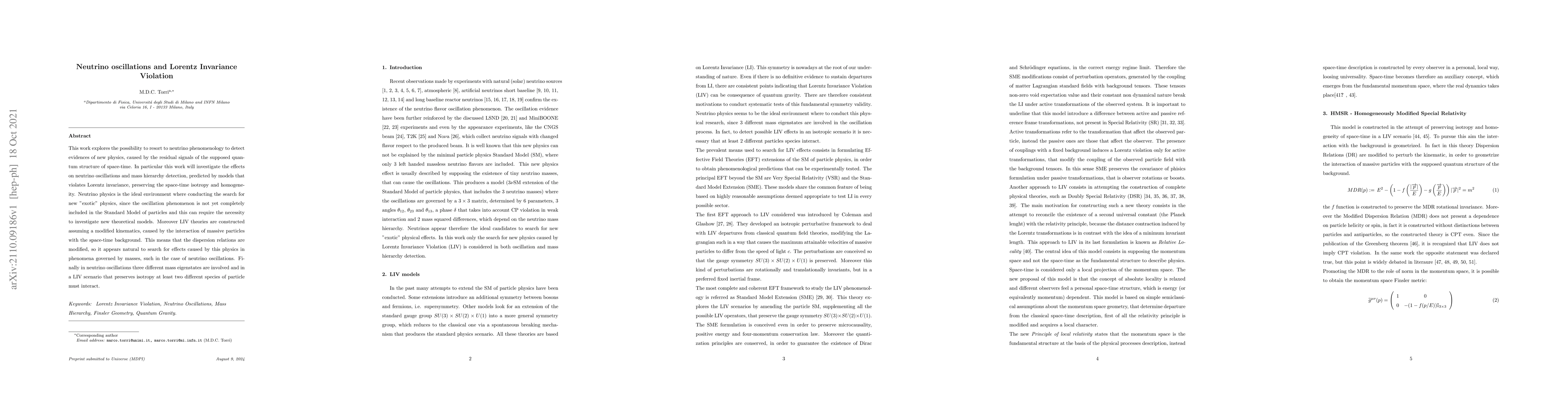 This paper investigates if neutrino oscillations could reveal evidence of Lorentz Invariance Violation (LIV), potentially indicating new physics beyond the Standard Model. It explores how LIV, which preserves spacetime isotropy and homogeneity, might alter oscillation patterns and mass hierarchy detection.