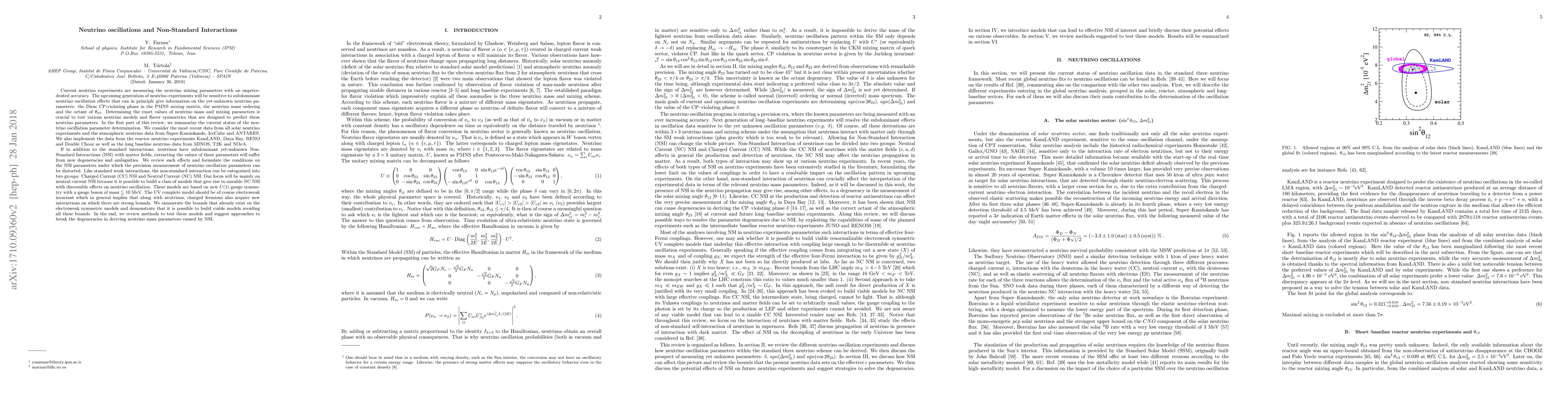 Current neutrino experiments measure the neutrino mixing parameters with an unprecedented accuracy. The upcoming generation of experiments will be sensitive to subdominant effects that can give information on the unknown neutrino parameters: the Dirac CP-violating phase, the mass ordering and the $\theta_{23}$ octant. Determining the exact values of neutrino mass and mixing parameters is crucial to test neutrino models and flavor symmetries. In the first part of this review, we summarize the current status of neutrino oscillation parameters. We consider the most recent data from solar experiments and the atmospheric data from Super-Kamiokande, IceCube and ANTARES. We implement the data from the reactor experiments KamLAND, Daya Bay, RENO and Double Chooz as well as the long baseline data from MINOS, T2K and NOvA. If in addition to the standard interactions, neutrinos have subdominant Non-Standard Interactions (NSI) with matter, extracting the values of these parameters will suffer from new degeneracies. We review such effects and formulate the conditions on the NSI parameters under which the precision measurement of neutrino oscillation parameters can be distorted. Like standard weak interactions, NSI can be categorized into Charged and Neutral Current NSI. Our focus will be on NC NSI since it is possible to build a class of models giving rise to sizeable NC NSI with effects on neutrino oscillations. These models are based on new $U(1)$ gauge symmetry with a boson of mass $\lesssim 10$ MeV. The UV complete model should be electroweak invariant which implies that along with neutrinos, charged fermions acquire new interactions on which there are strong bounds. We enumerate the bounds that exist on such models and show that it is possible to build viable models avoiding all the bounds. We review methods to test these models and suggest approaches to break the degeneracies caused by NSI.
