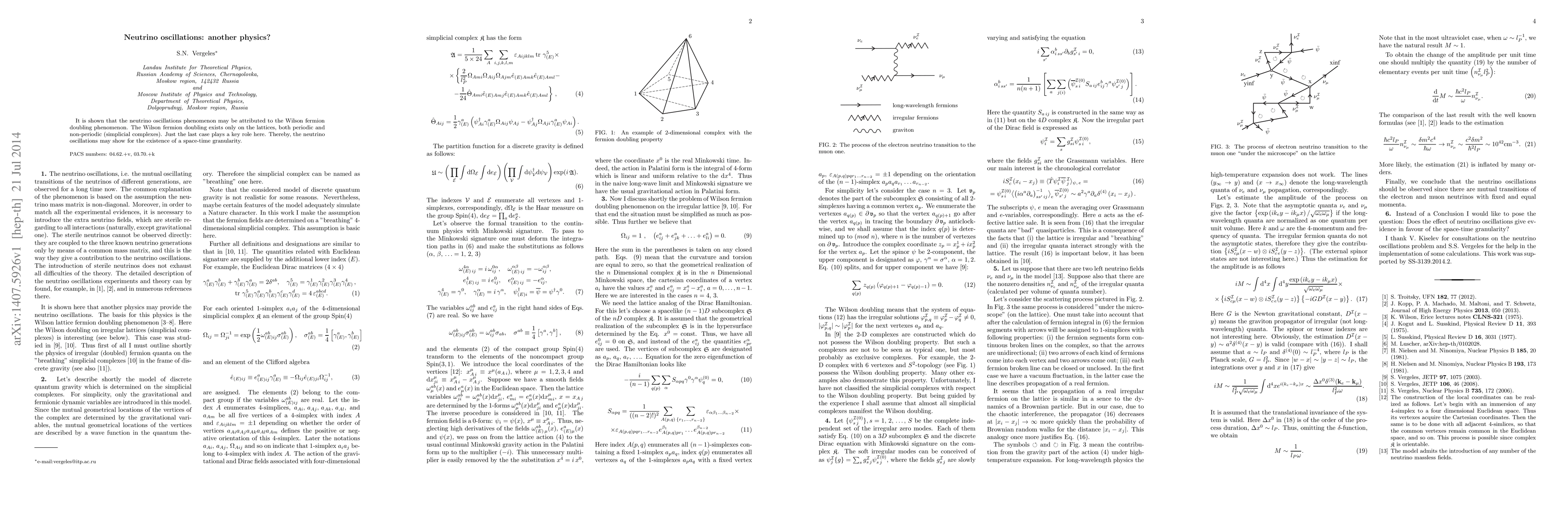 Summary: This paper proposes that neutrino oscillations can be explained by the Wilson fermion doubling phenomenon, which is a lattice effect, particularly in non-periodic simplicial complexes, suggesting a potential space-time granularity.
