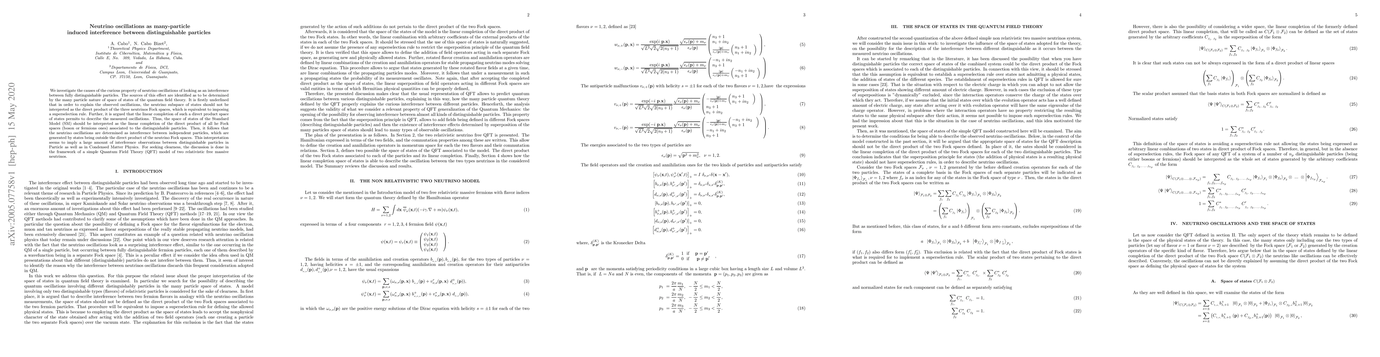 The paper proposes a novel interpretation of neutrino oscillations as many-particle induced interference between distinguishable particles, challenging the conventional view of neutrino subspace states as a direct product of individual neutrino Fock spaces.