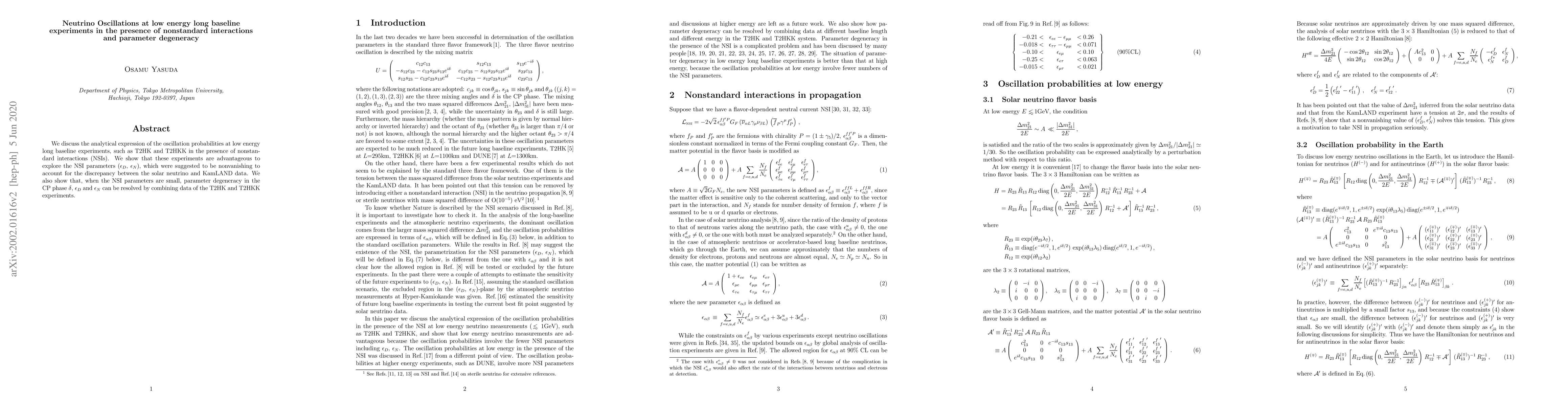 Research paper discusses the potential of low-energy long baseline experiments to detect nonstandard interactions in neutrino oscillations, resolving parameter degeneracy with combined data.