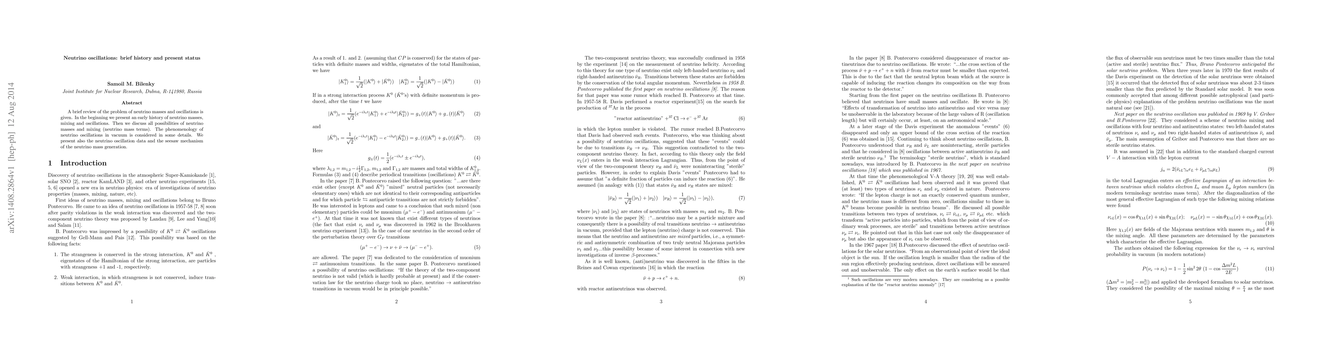 This paper provides a concise history of neutrino masses and oscillations, detailing their early development and current understanding, including the phenomenology of vacuum oscillations and the seesaw mechanism for mass generation. It also reviews existing data on neutrino oscillations.