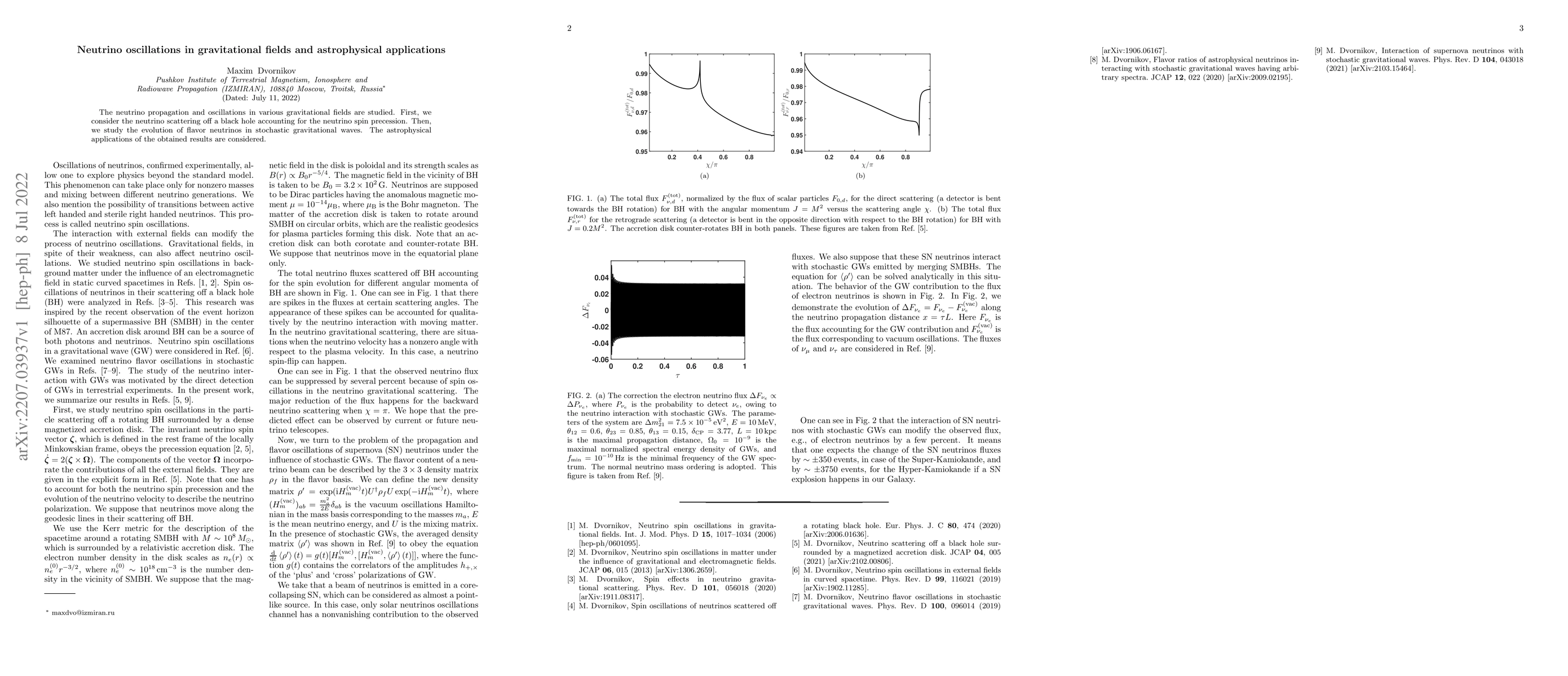 This paper investigates neutrino oscillations influenced by gravitational fields, including scattering off a black hole and evolution in stochastic gravitational waves, and explores their astrophysical implications.