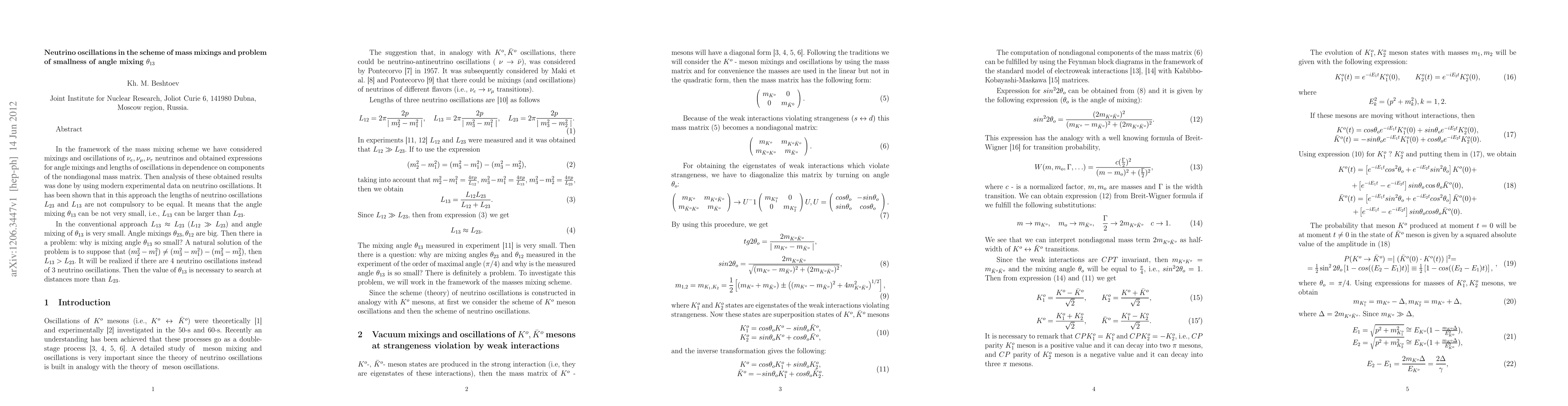 Neutrino oscillations have been re-examined in a mass mixing scheme, revealing that the length of oscillation for the 1-3 transition can be larger than the 2-3 transition without violating current experimental data. This challenges the conventional approach where the angle mixing between these transitions is very small.