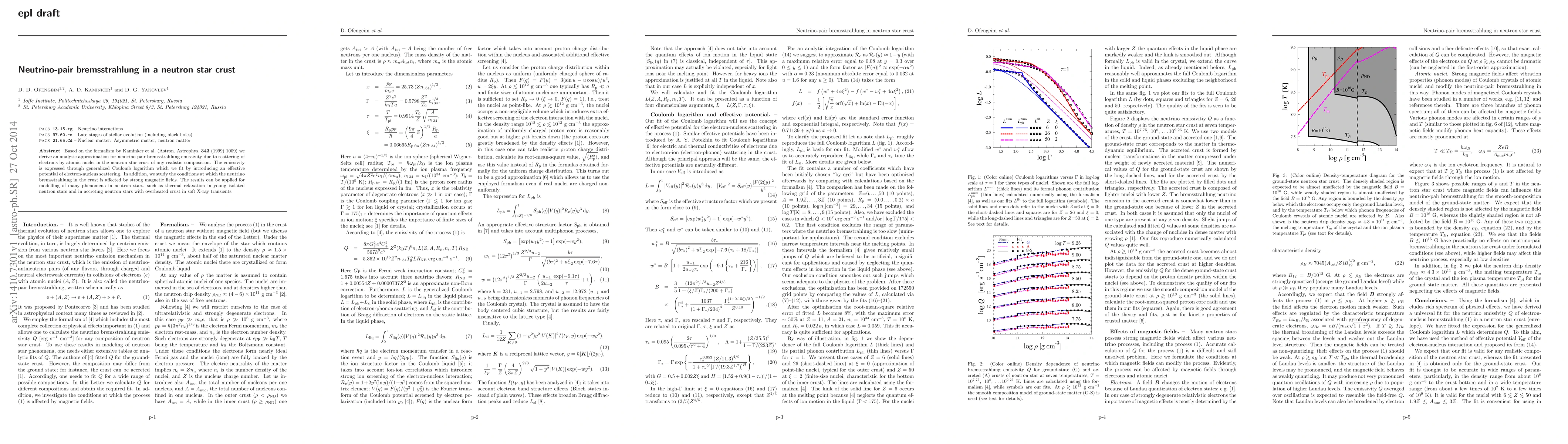 This paper provides an analytic approximation for neutrino-pair bremsstrahlung emissivity in neutron star crusts, derived from the formalism by Kaminker et al. The study also examines how strong magnetic fields influence this process, with implications for modeling thermal relaxation in various neutron star environments.