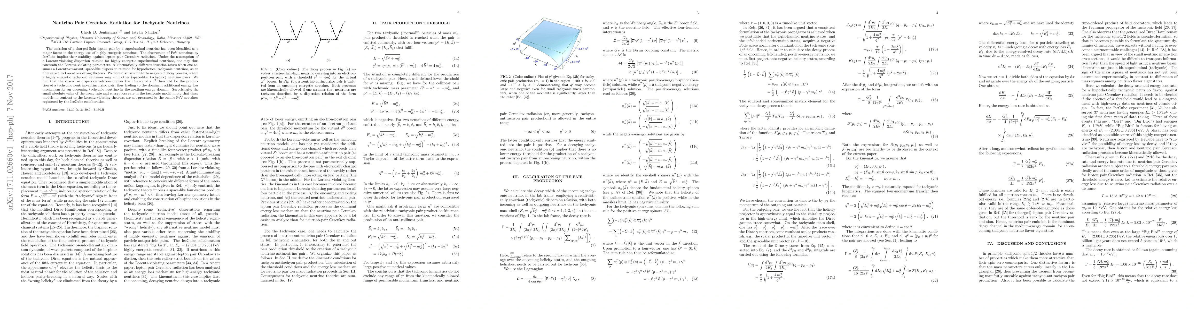 This paper explores the decay mechanism of hypothetical tachyonic neutrinos via the emission of neutrino pairs through Cerenkov radiation, revealing a dominant energy loss process in the medium-energy domain. Contrary to Lorentz-violating theories, the small decay rate suggests that tachyonic neutrino models are not constrained by observed PeV neutrinos.