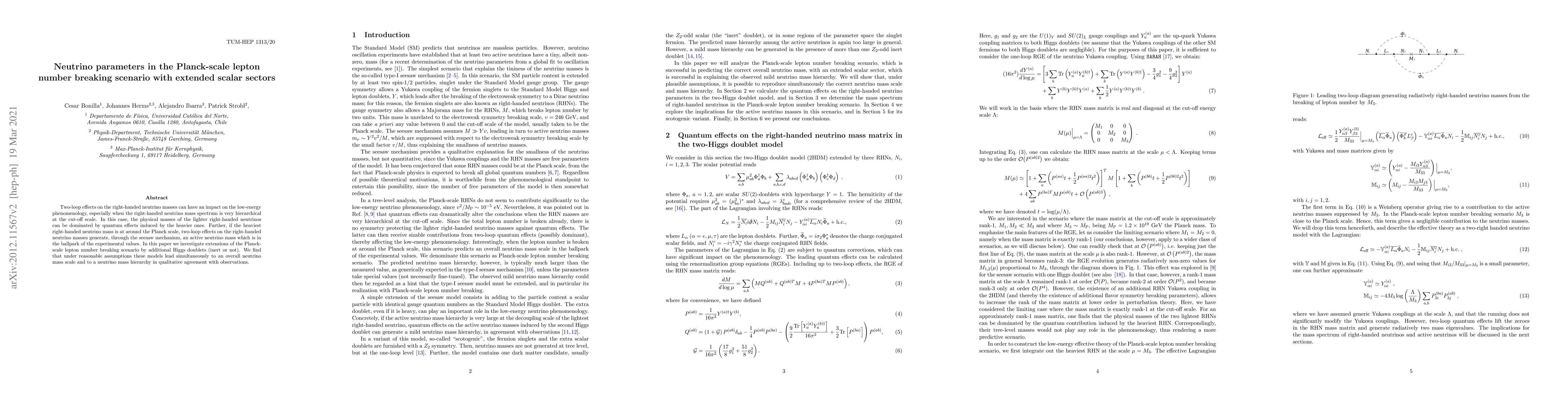 This paper explores extended scalar sectors in the Planck-scale lepton number breaking scenario, focusing on two-loop effects influencing right-handed neutrino masses. It finds that these effects can generate active neutrino masses consistent with experimental observations, while maintaining a suitable mass hierarchy.